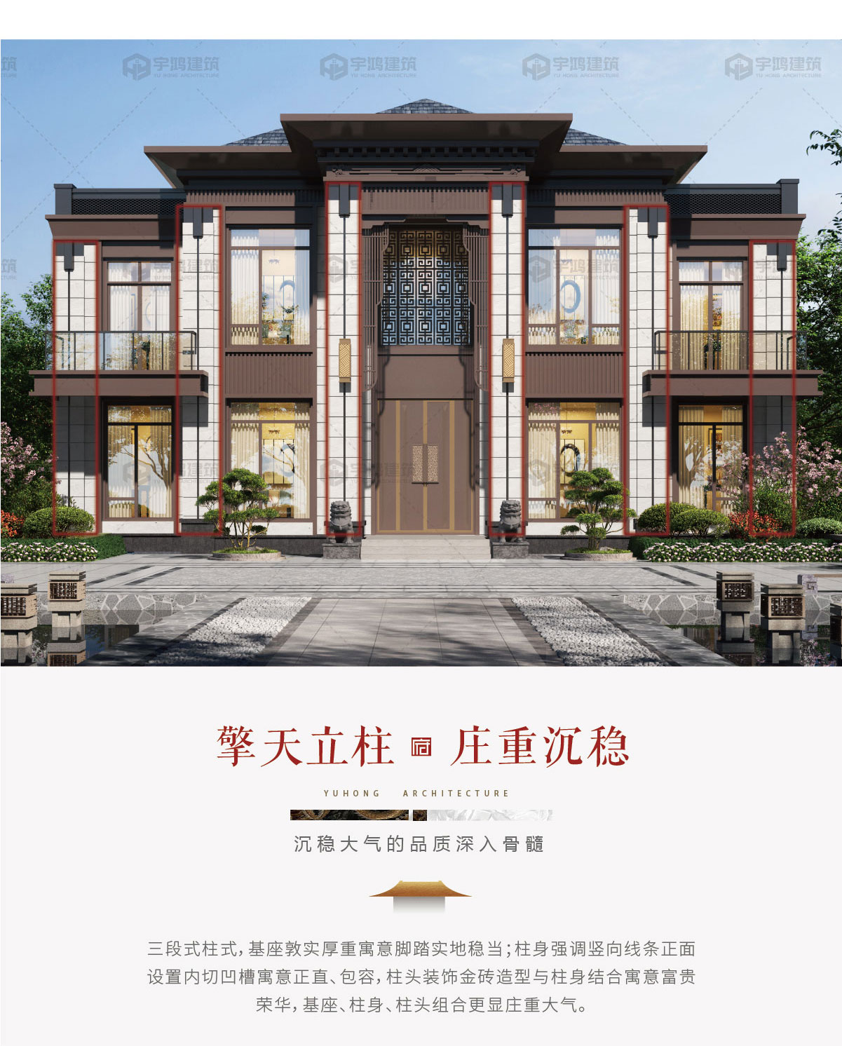 新款大氣中式農村三層別墅設計圖紙及效果圖