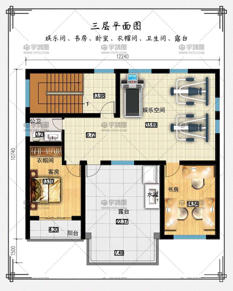 建筑平面圖:一層平面圖,二層平面圖,三層平面圖;