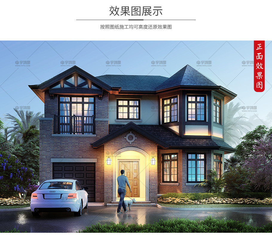 成品圖紙>20萬二層帶車庫英式農(nóng)村小別墅設(shè)計(jì)圖紙