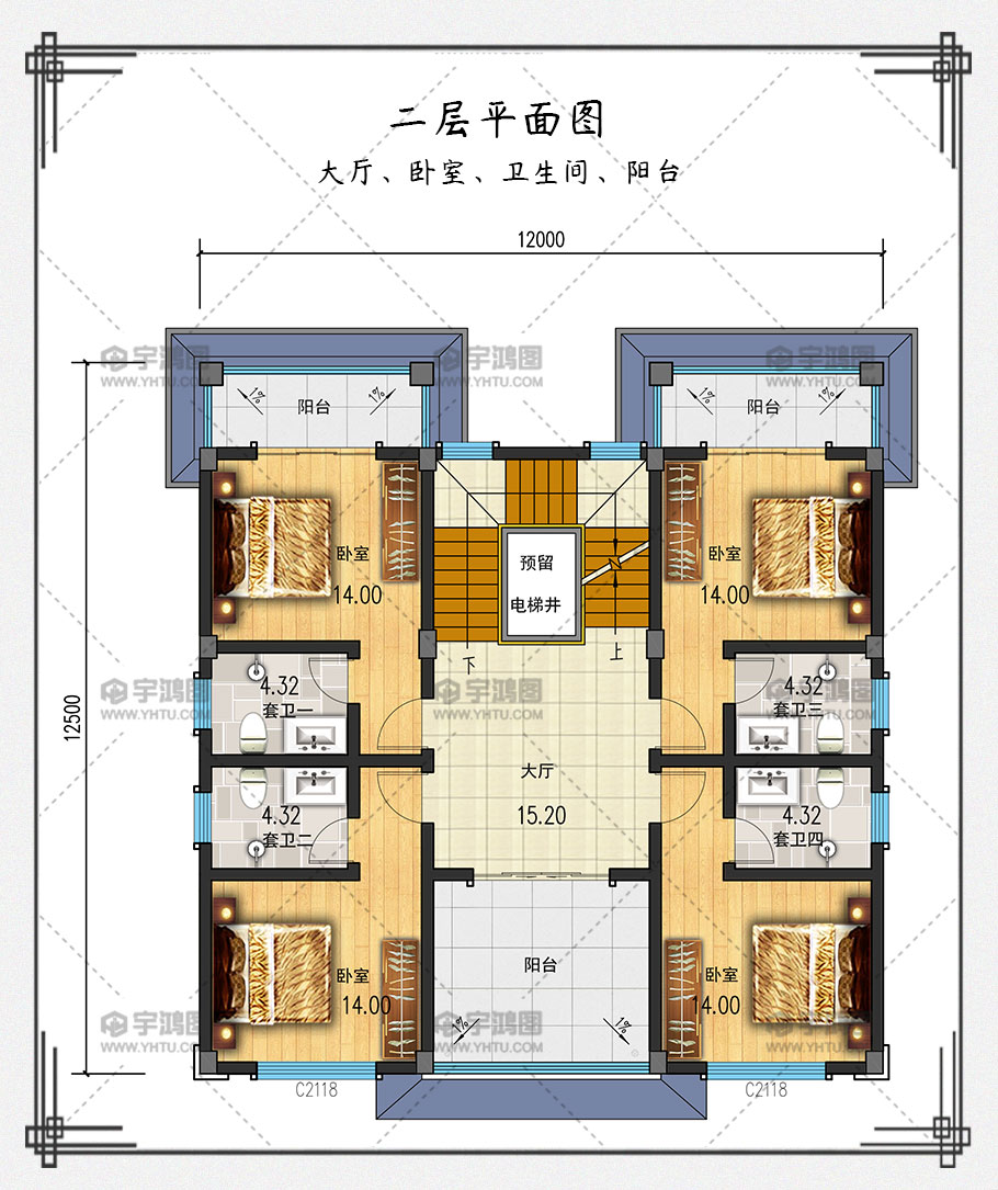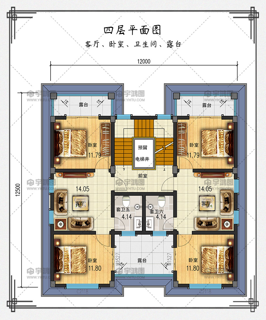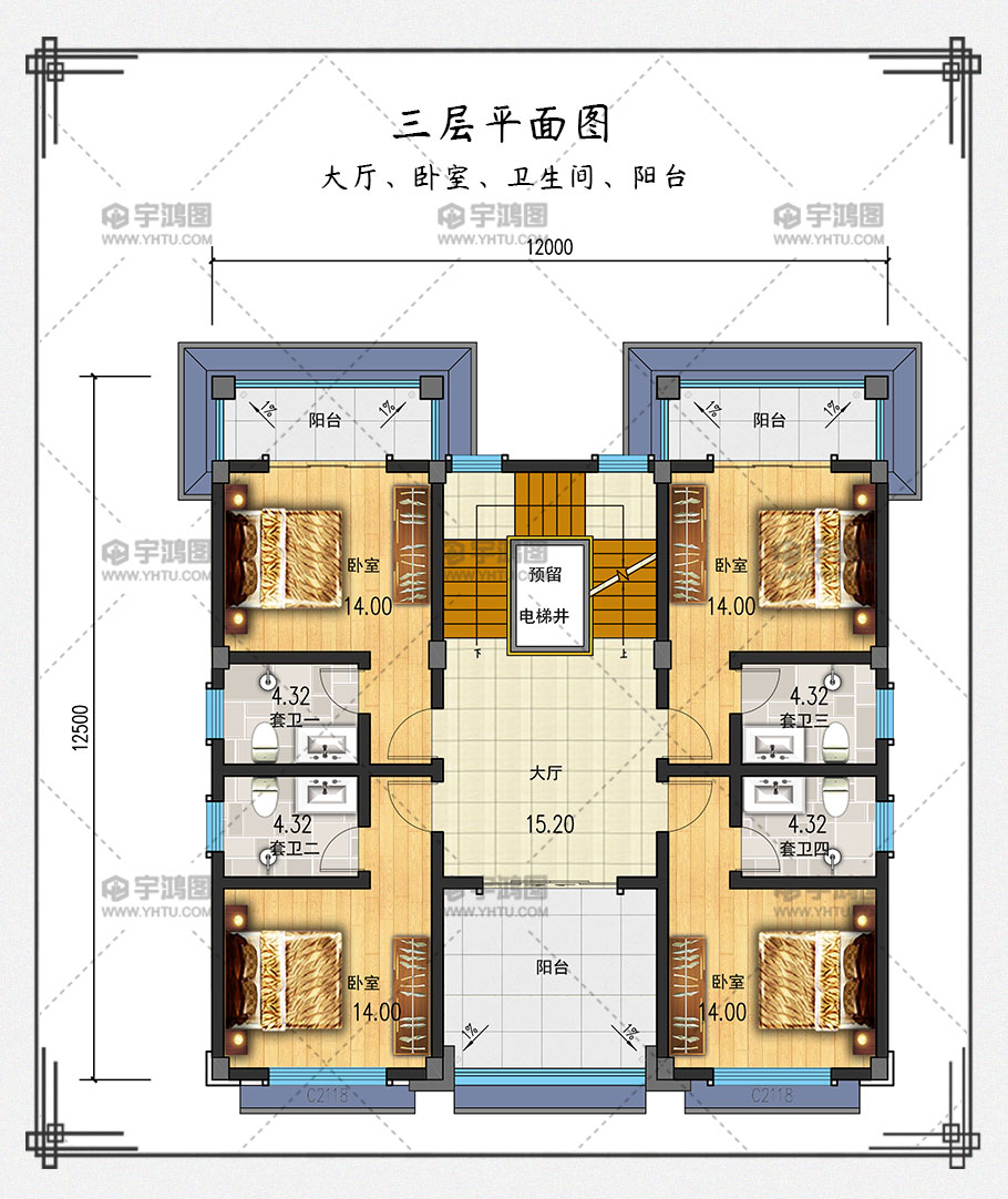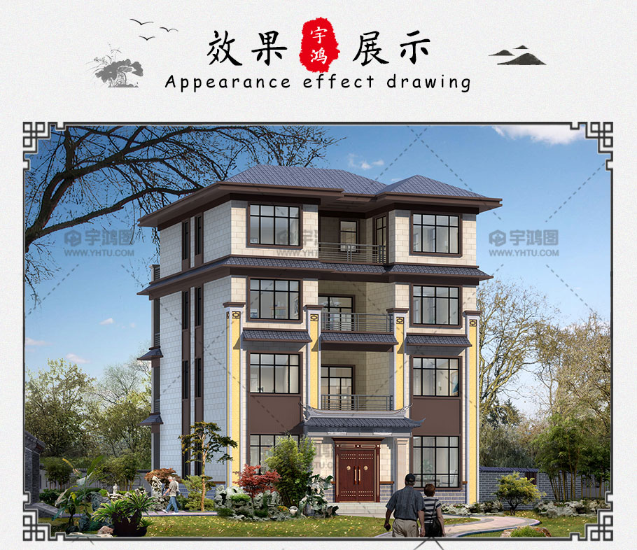 本戶型為帶電梯四層中式農村別墅房屋設計圖,農村豪宅首選,非常的豪華。現在回農村老家建別墅的人越來越多,對戶型的要求也隨之提高,除了每層功能齊全,還想要外觀漂亮大氣。此戶型占地面積144.3平方米,框架結構帶電梯設計,可以滿足你對于家的任何需求!可以說,這樣高端大氣的中式豪華別墅,就是屬于成功人士的住宅!