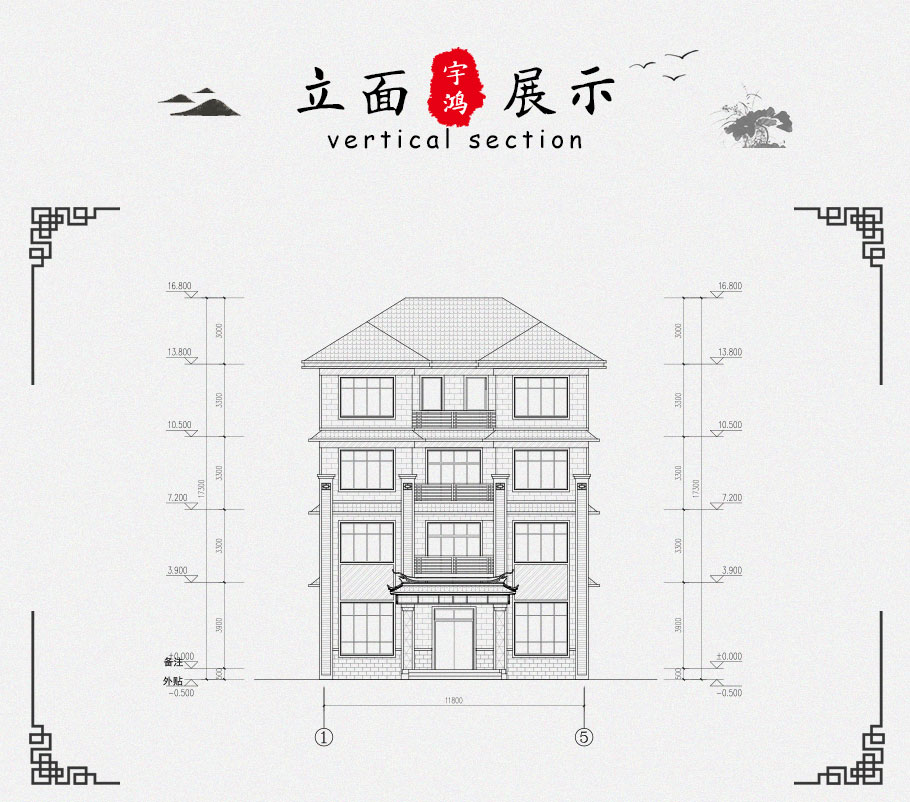 建筑立面圖:東立面圖,西立面圖,南立面圖,北立面圖,剖面圖;