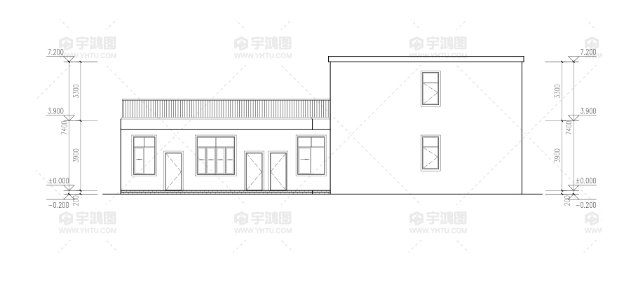 建筑立面圖:東立面圖,西立面圖,南立面圖,北立面圖,剖面圖;