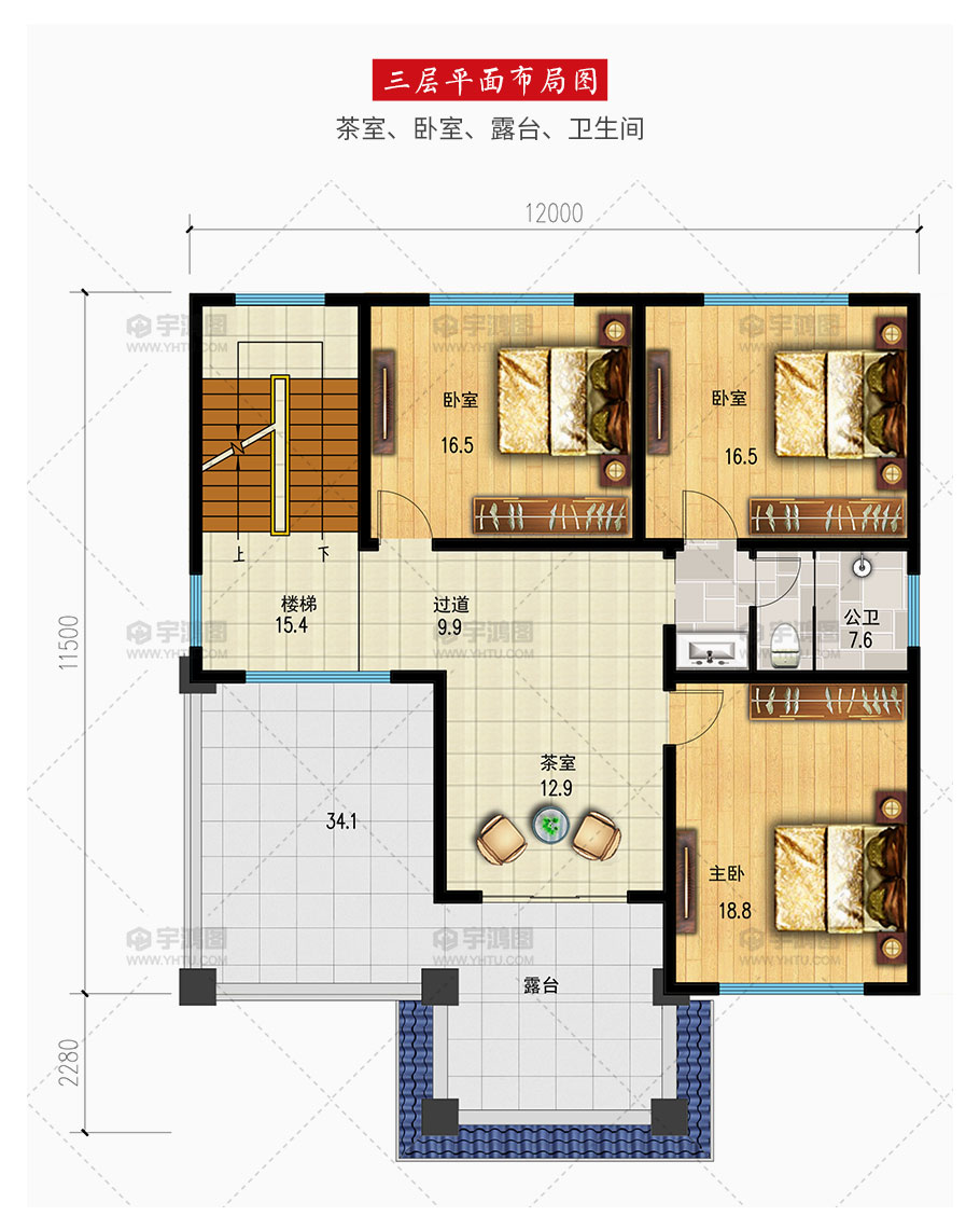 成品圖紙>12mx13m三層帶露臺自建別墅設(shè)計圖紙
