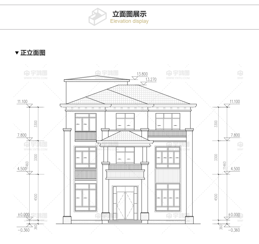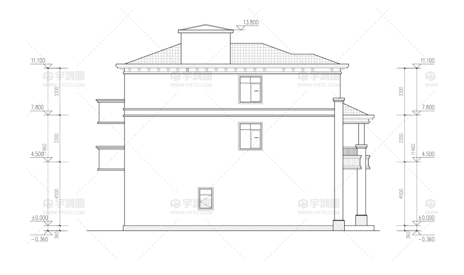 | 風格:歐式 | 層數:三層 | 結構形式:磚混結構 | 圖紙編號:YH-A-3091 |
