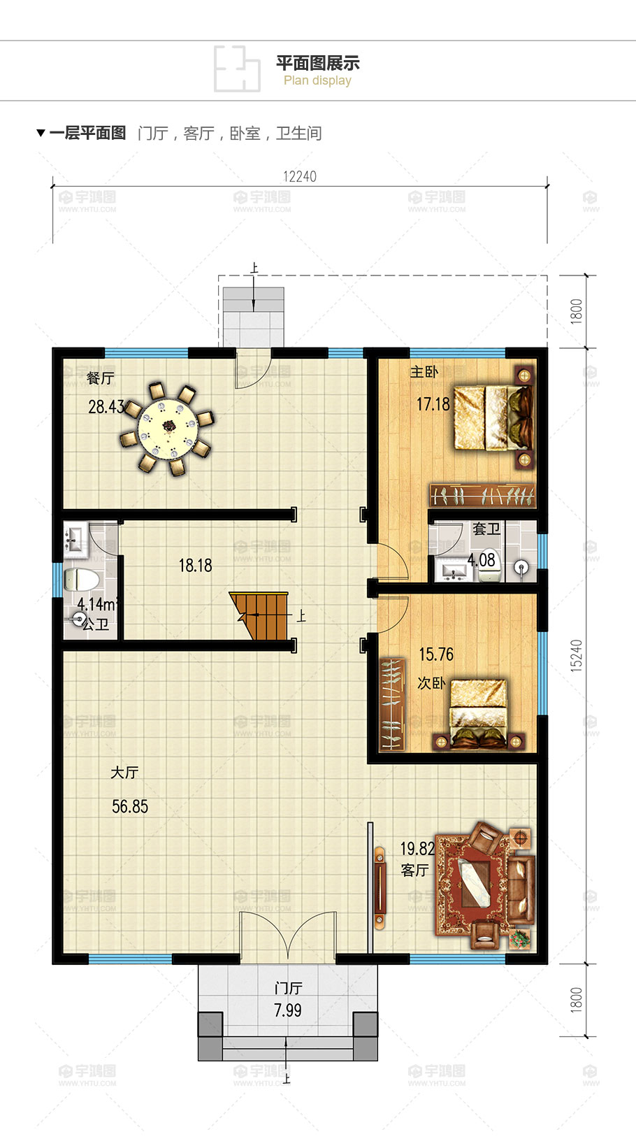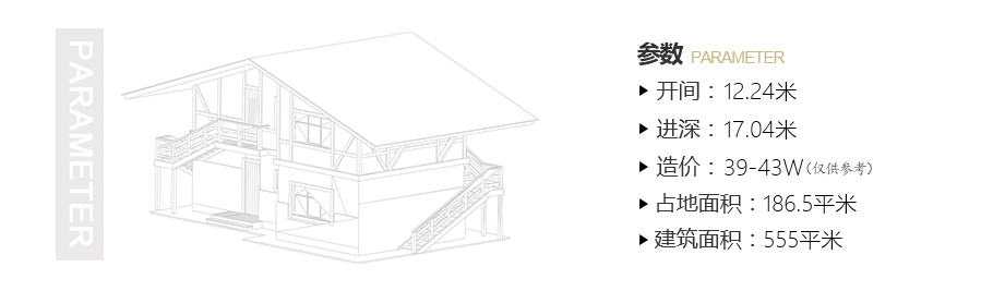| 開間:12.24米 | 進深:17.04米 | 占地面積:186.5平方米 | 建筑面積:555平方米 |