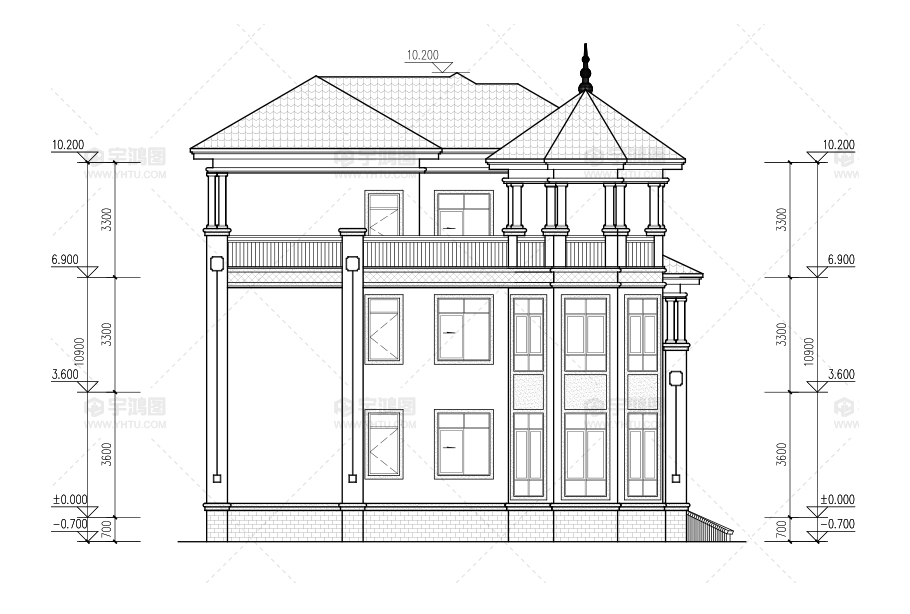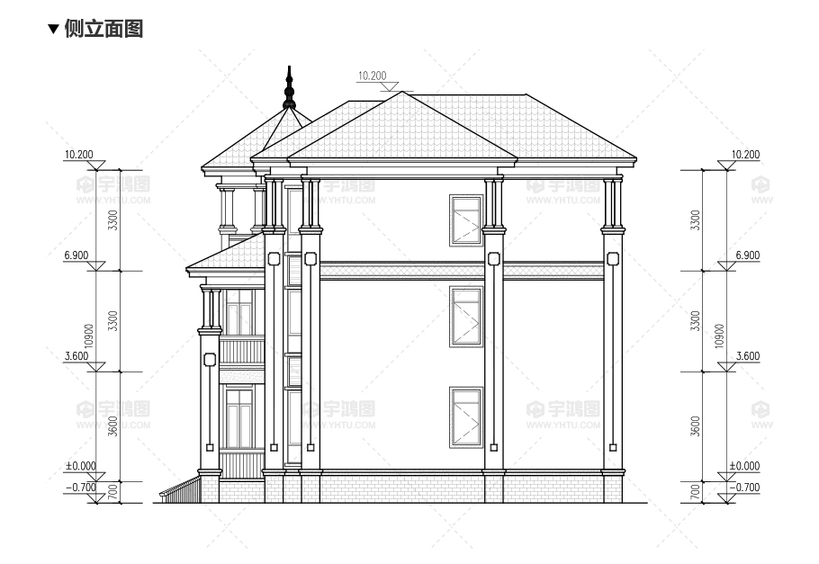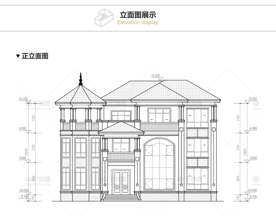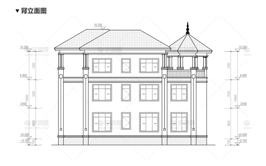 建筑立面圖:東立面圖,西立面圖,南立面圖,北立面圖,剖面圖;