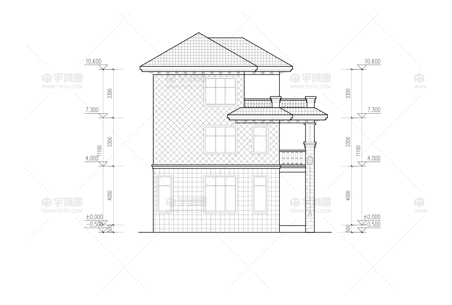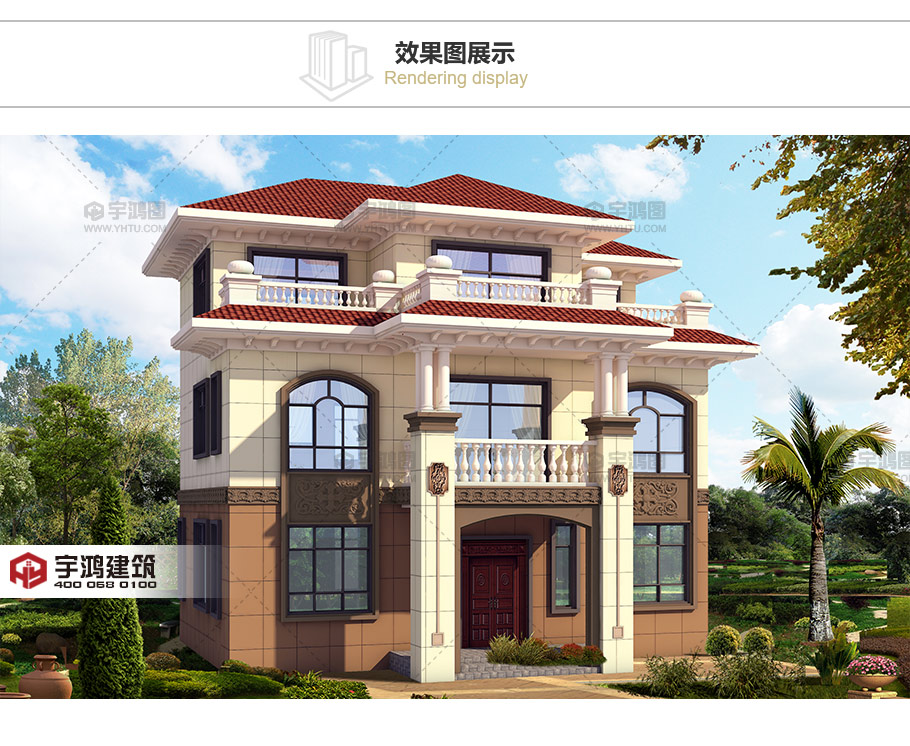 風格:歐式 層數(shù):三層 結(jié)構(gòu)形式:磚混結(jié)構(gòu) 圖紙編號:YH-A-3019