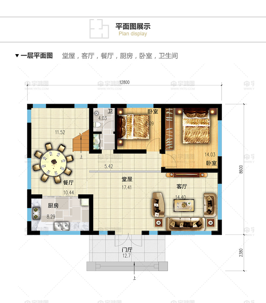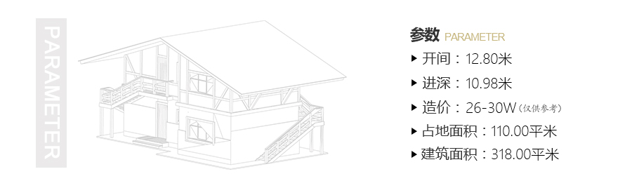 開間:12.8米 進深:10.98米 占地面積:110平方米 建筑面積:318平方米