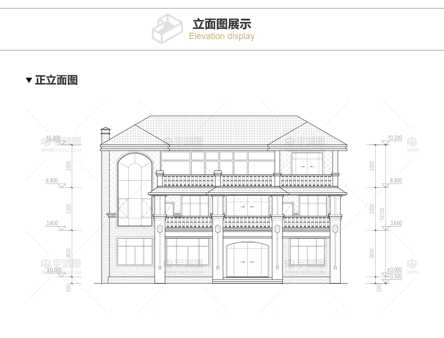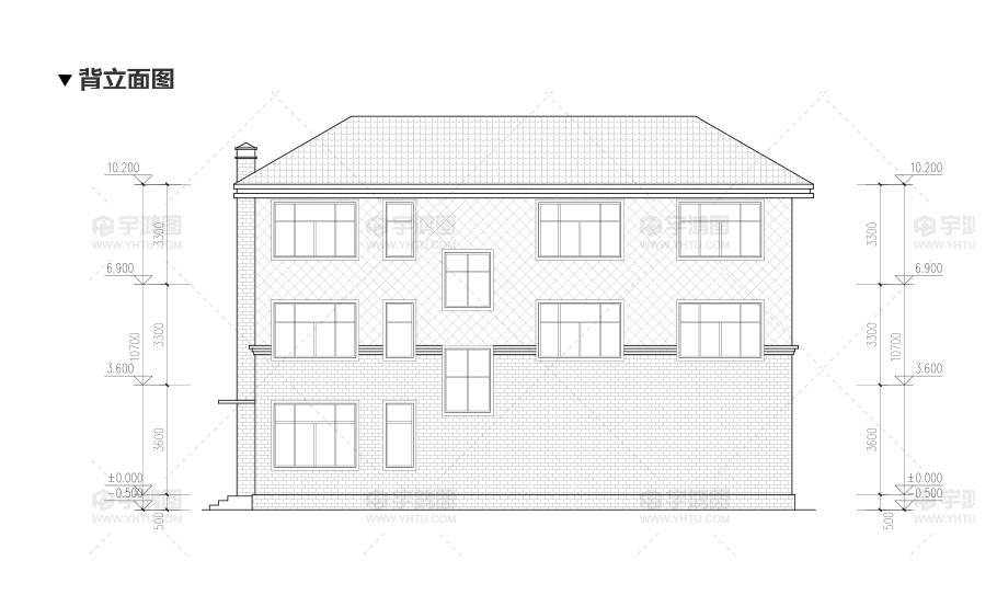 建筑立面圖:東立面圖,西立面圖,南立面圖,北立面圖,剖面圖;
