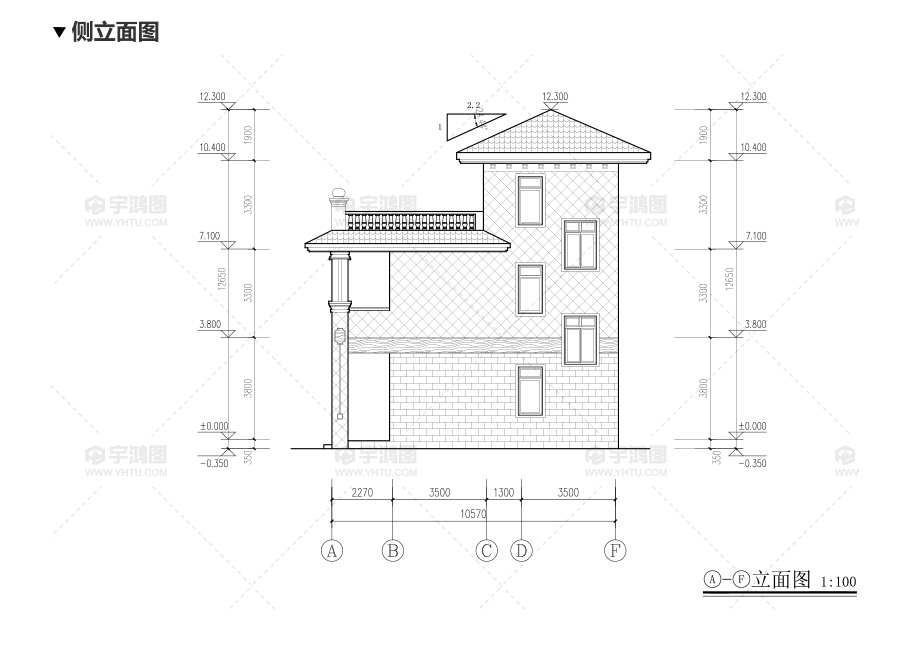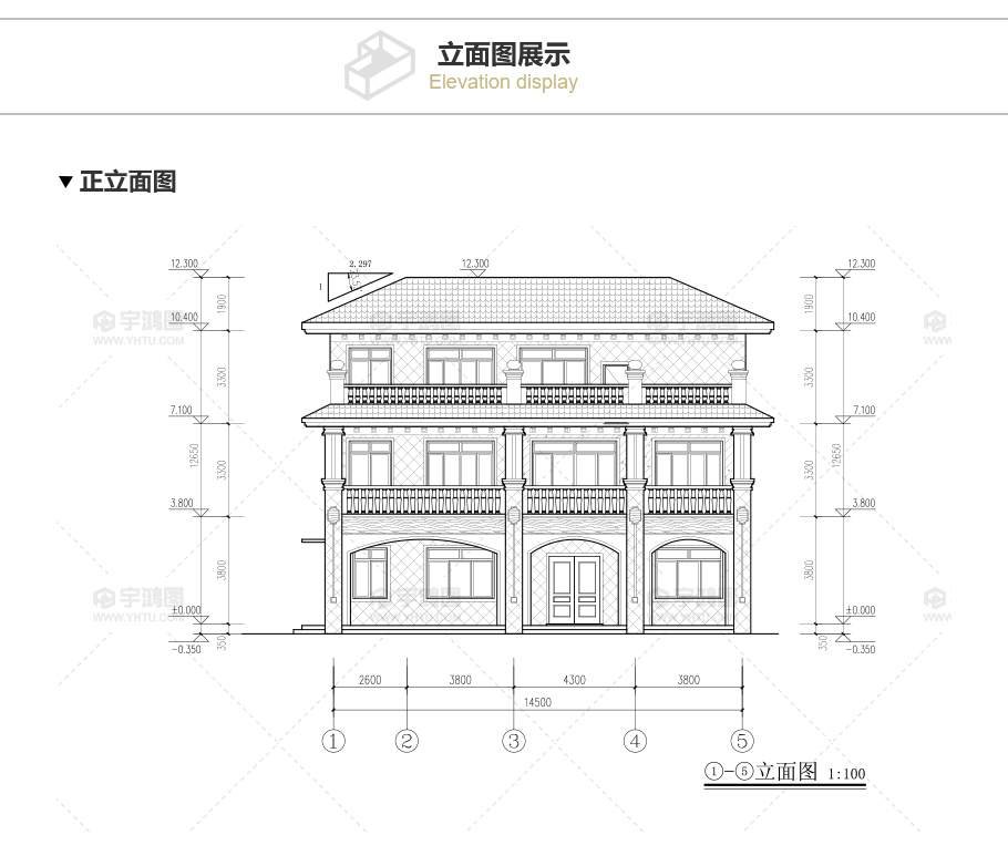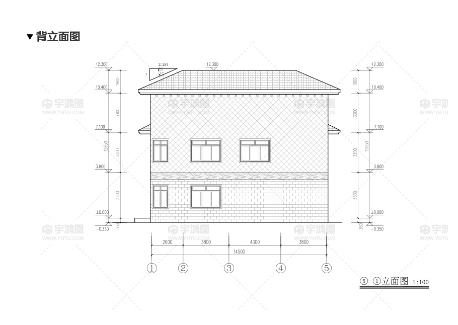 建筑立面圖:東立面圖,西立面圖,南立面圖,北立面圖,剖面圖;