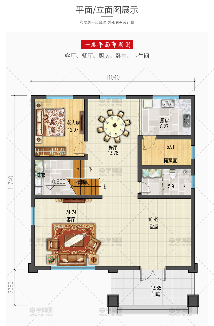 占地面積:129.6平方米 |