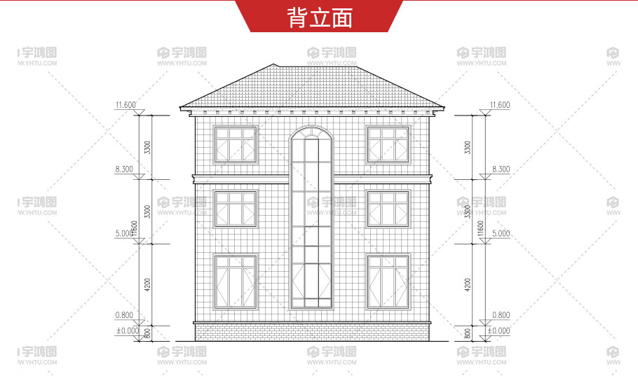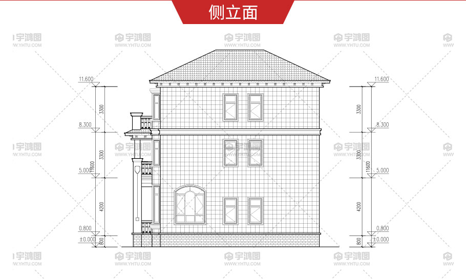 建筑立面圖:東立面圖,西立面圖,南立面圖,北立面圖,剖面圖;