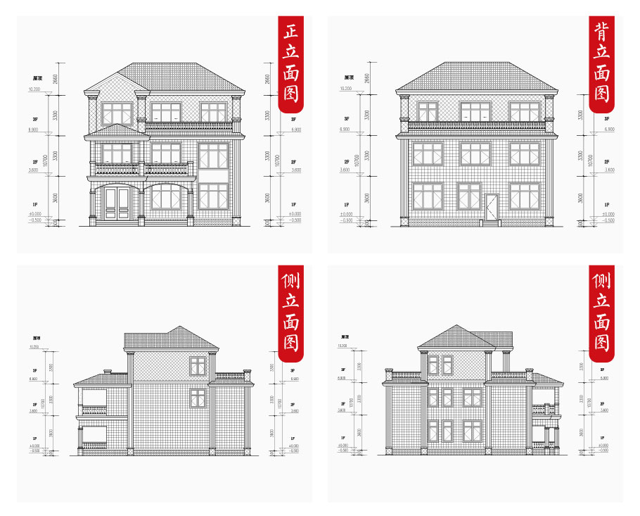 | 建筑圖: | 建筑平面圖:一層平面圖,二層平面圖,三層平面圖; 建筑立面圖:東立面圖,西立面圖,南立面圖,北立面圖,剖面圖; 大樣圖:樓梯詳圖,細部大樣,門窗大樣 |