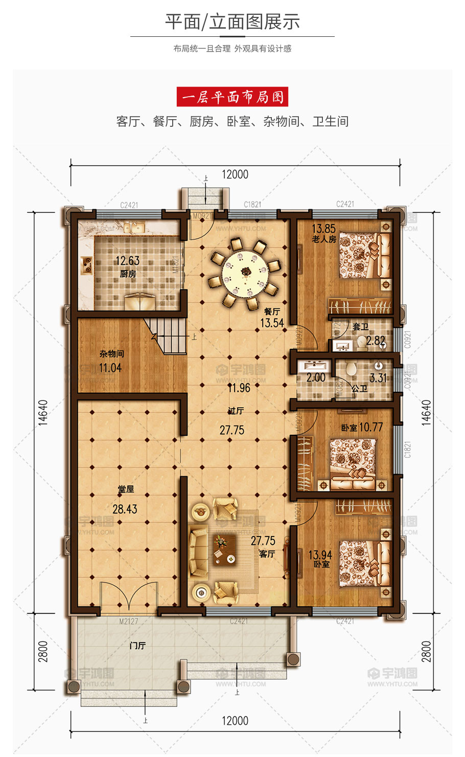 | 開間:12米 | 進深:17.44米 | 占地面積:175.68平方米 | 建筑面積:455平方米 |