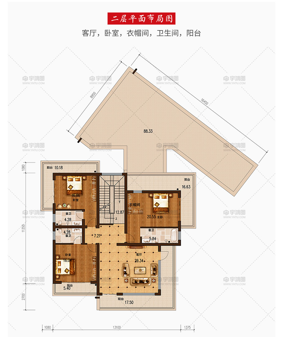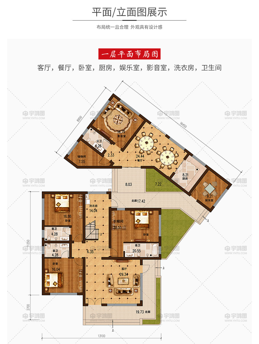 | 風格:現代 | 層數:二層 | 結構形式:磚混結構 | 圖紙編號:YH-A-2120 |