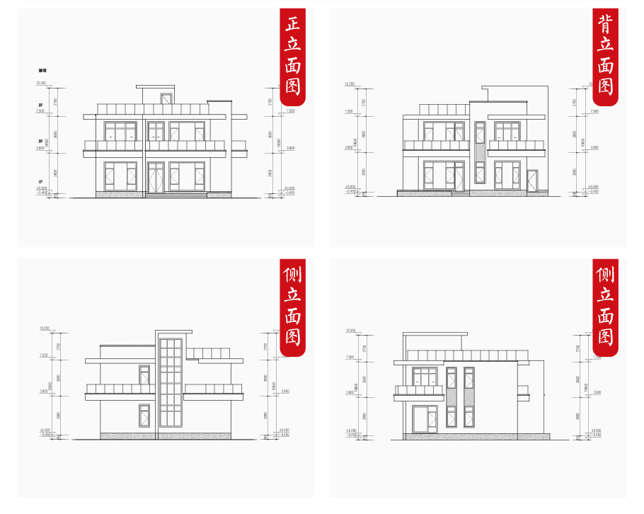 | 建筑圖: | 建筑平面圖:一層平面圖,二層平面圖; 建筑立面圖:東立面圖,西立面圖,南立面圖,北立面圖,剖面圖; 大樣圖:樓梯詳圖,細部大樣,門窗大樣 |
