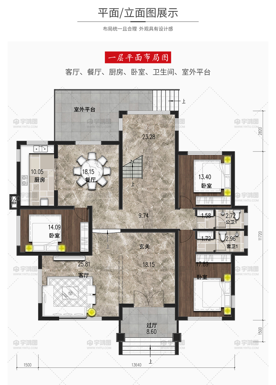 | 開間:15.14米 | 進深:16.04米 | 占地面積:187.3平方米 | 建筑面積:324平方米 |