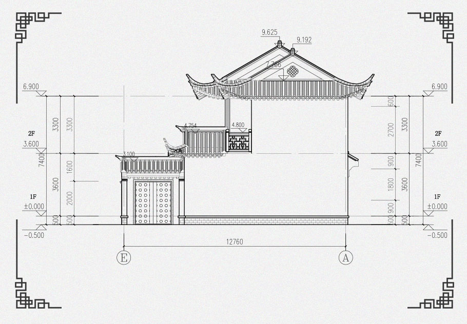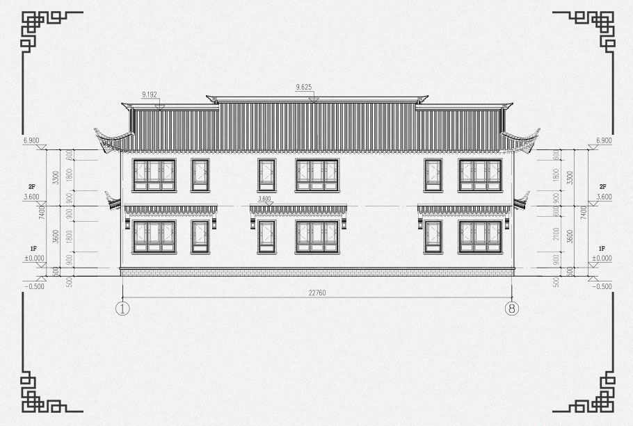 建筑立面圖:東立面圖,西立面圖,南立面圖,北立面圖,剖面圖;