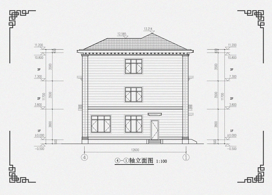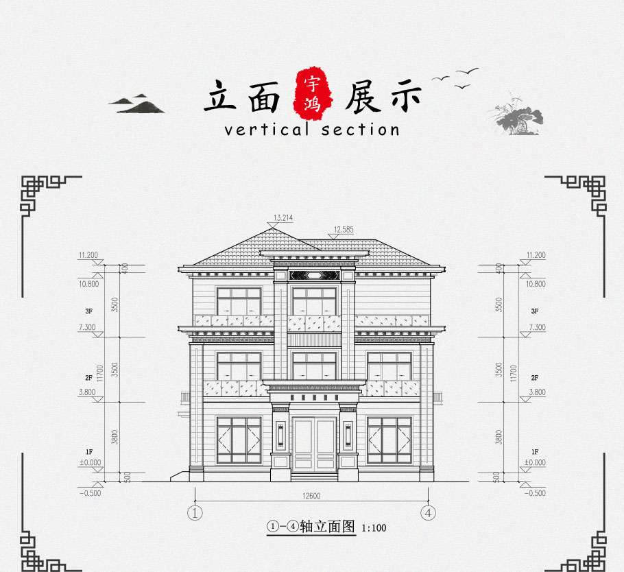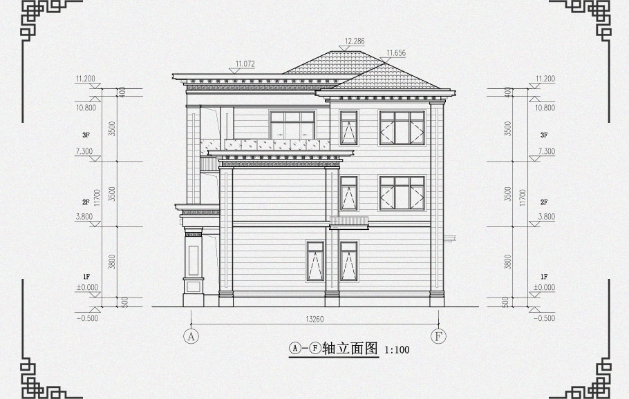 建筑立面圖:東立面圖,西立面圖,南立面圖,北立面圖,剖面圖;