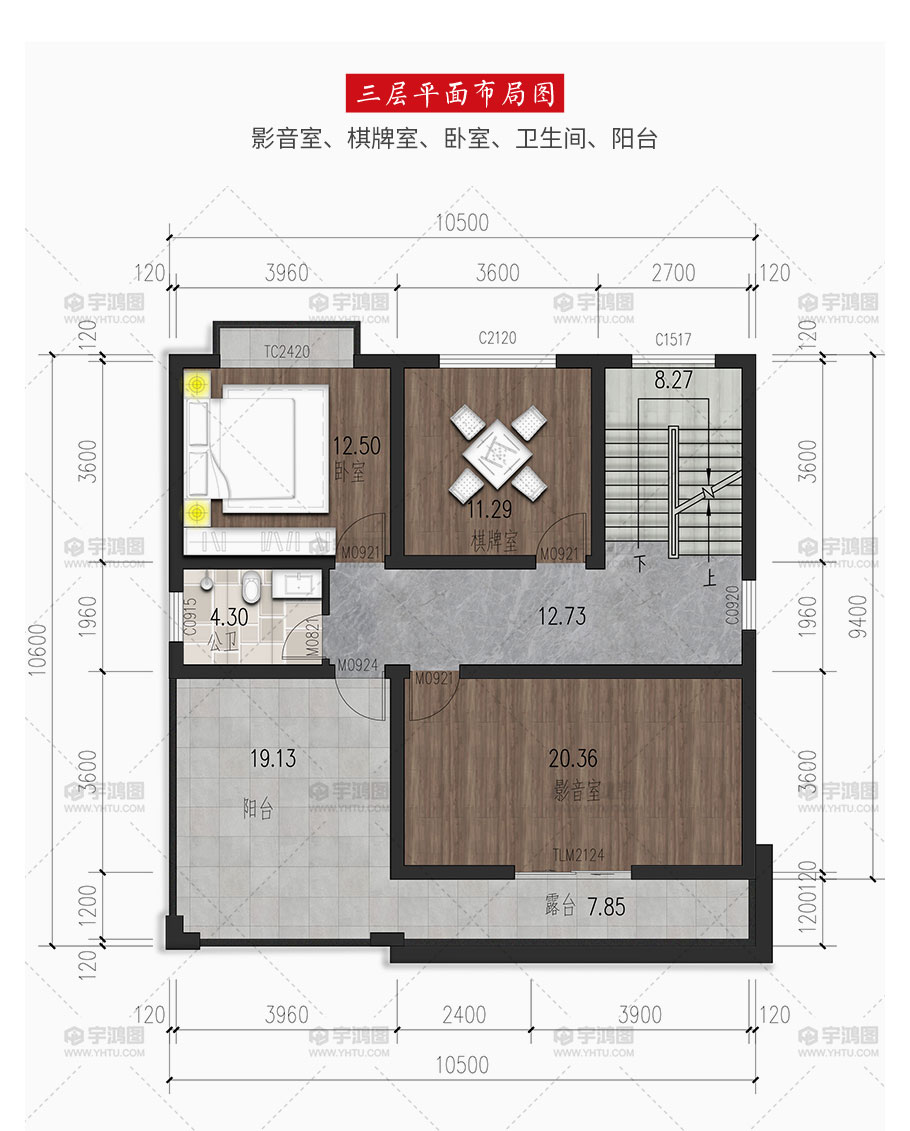 10.5x10.6米三層現代別墅設計圖紙