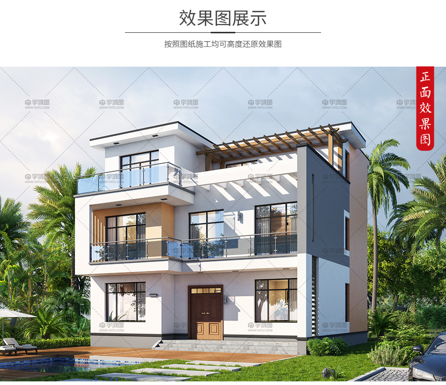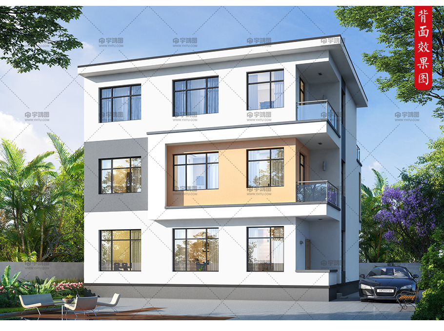 12x12米帶大陽臺現(xiàn)代別墅設計圖紙