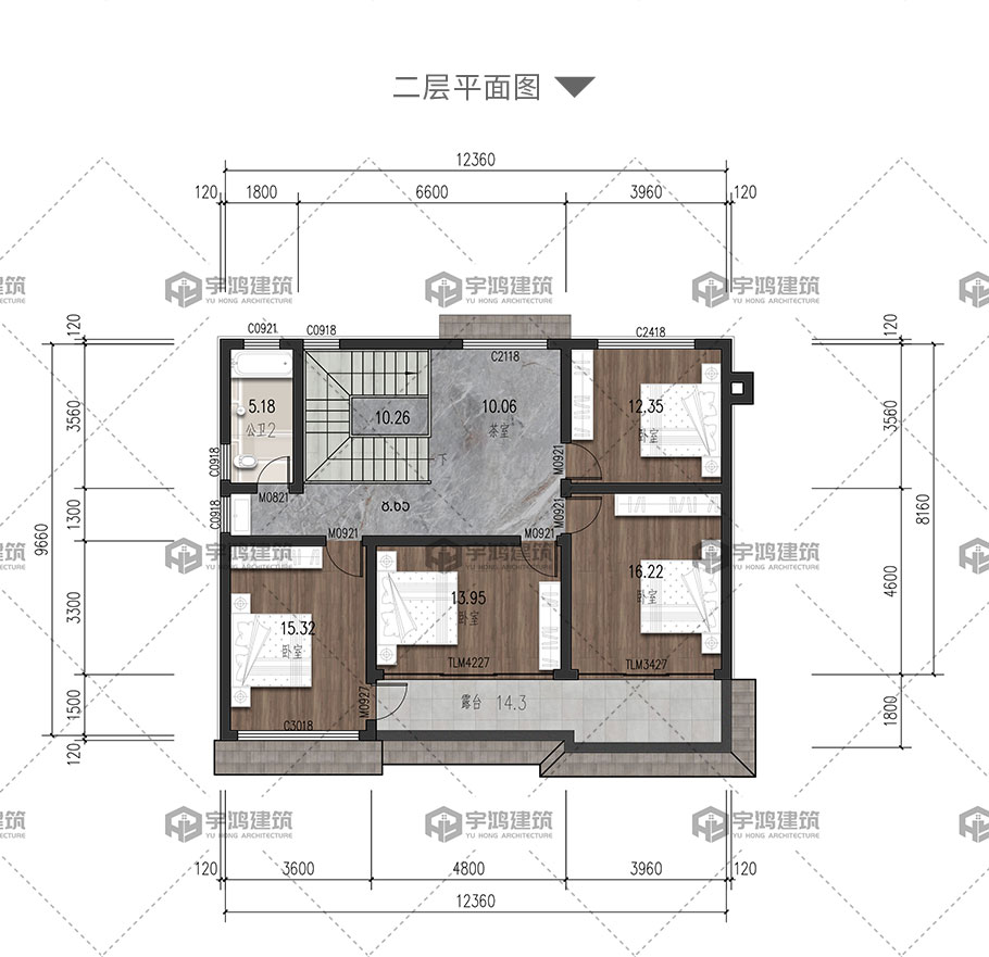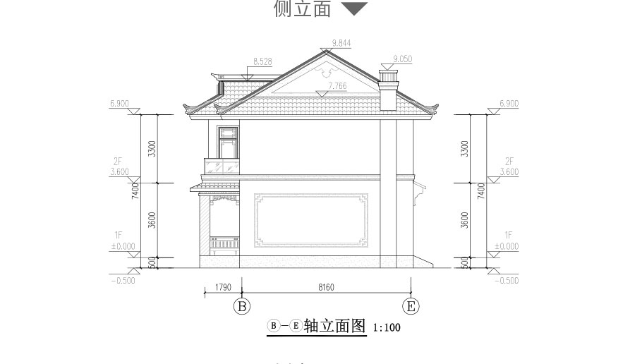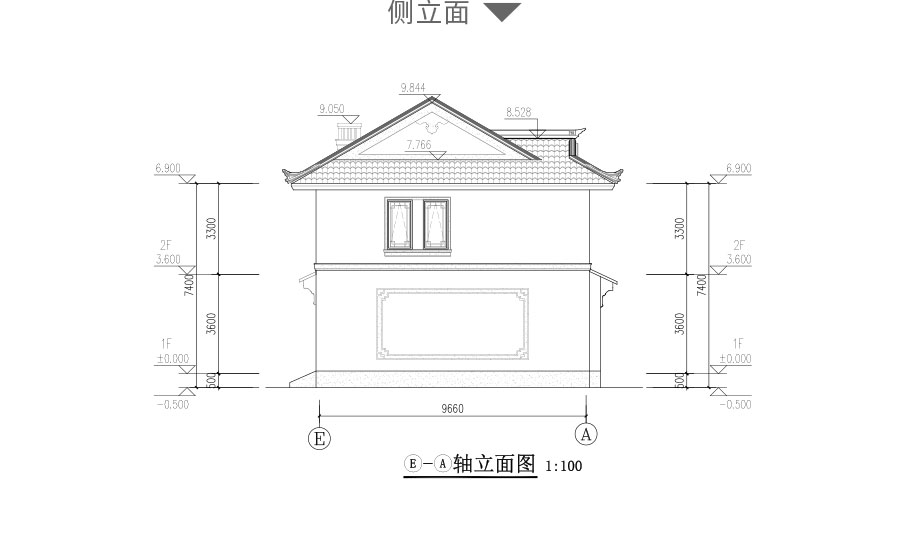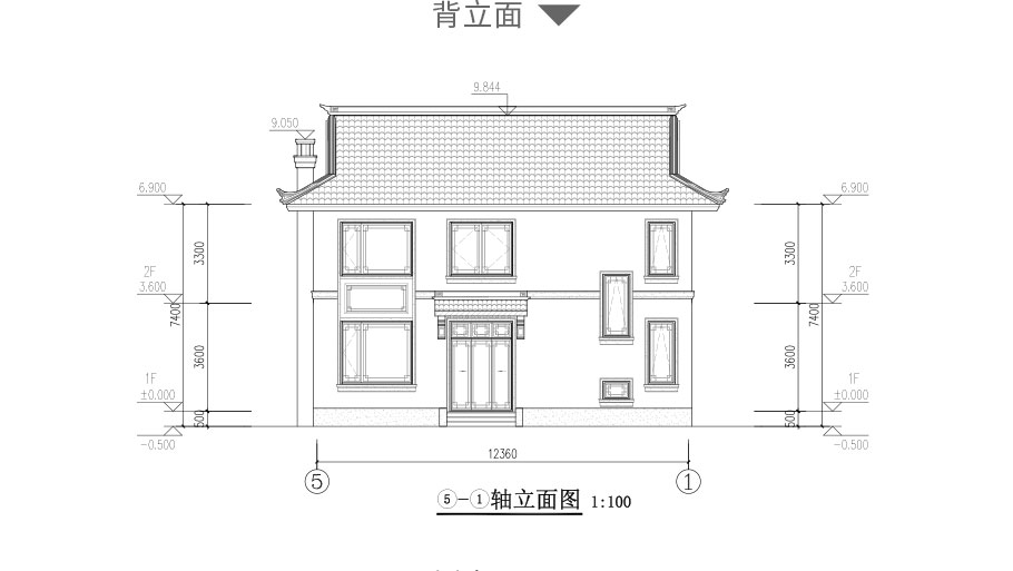 建筑立面圖:東立面圖,西立面圖,南立面圖,北立面圖,剖面圖;