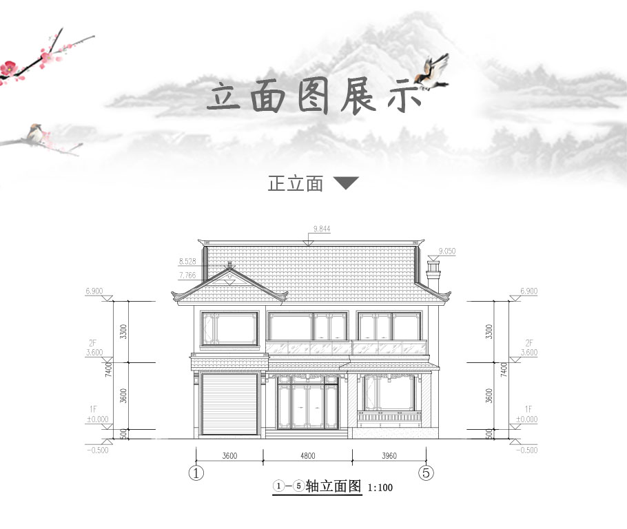 成品圖紙>125平帶車庫中式小別墅設(shè)計(jì)圖
