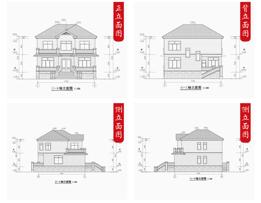| 建筑圖: | 建筑平面圖:一層平面圖,二層平面圖; 建筑立面圖:東立面圖,西立面圖,南立面圖,北立面圖,剖面圖; 大樣圖:樓梯詳圖,細部大樣,門窗大樣 |