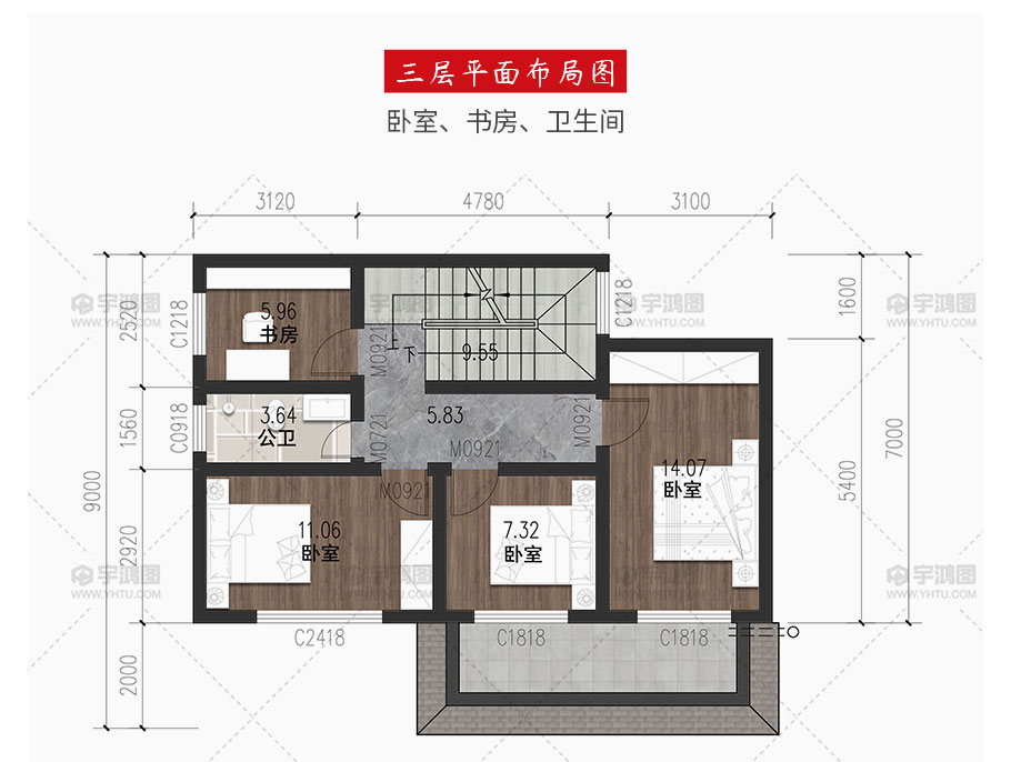 建筑平面圖:一層平面圖,二層平面圖,三層平面圖,四層平面圖;