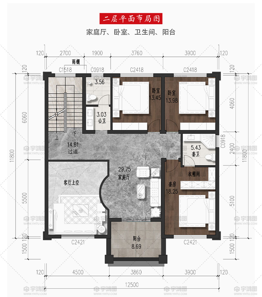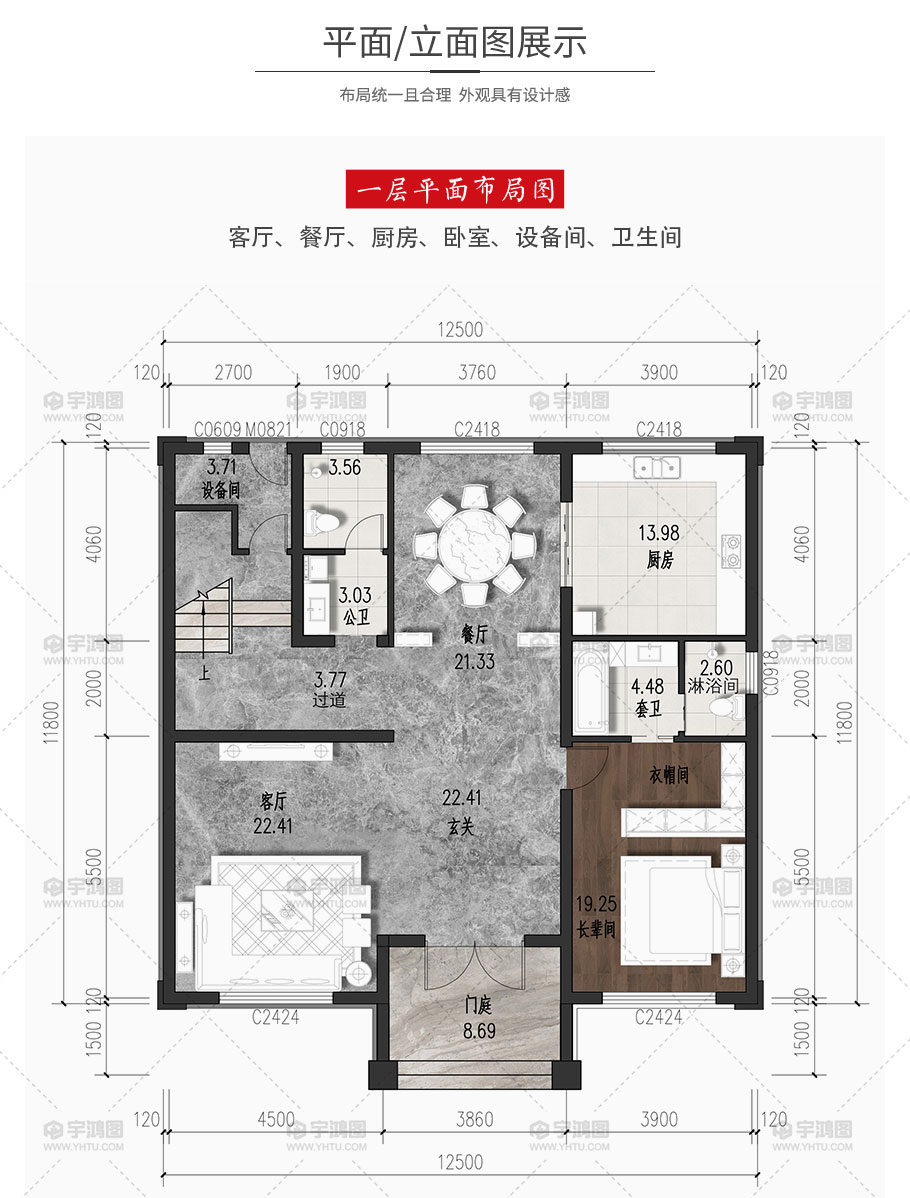 復(fù)式三層帶大露臺別墅圖紙及外觀效果圖