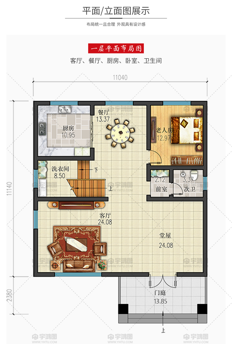 本戶型為經濟小戶型二層小樓別墅設計圖,有兩種方案可供選擇,造價低,施工簡單,別墅外觀采用米黃色和灰色真石漆搭配裝飾,溫暖和諧的配色,精致的陽臺與大氣的門廊顯得端莊又體面,復式客廳設計,室內布局合理實用,一樓堂屋符合農村建房標準。