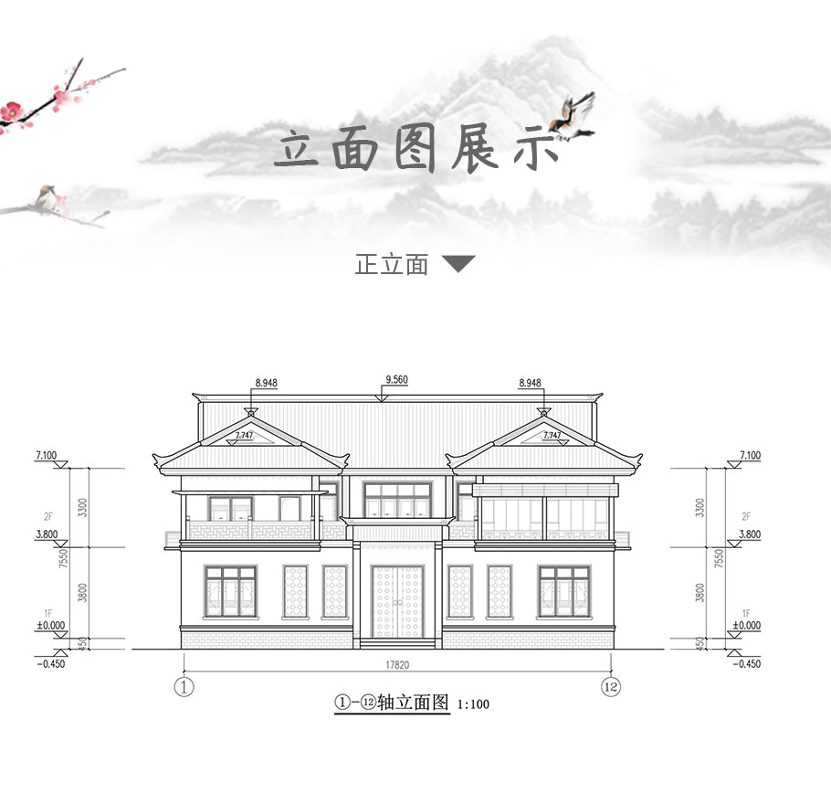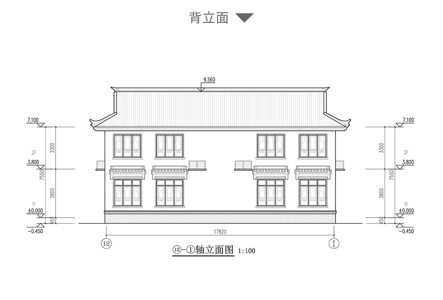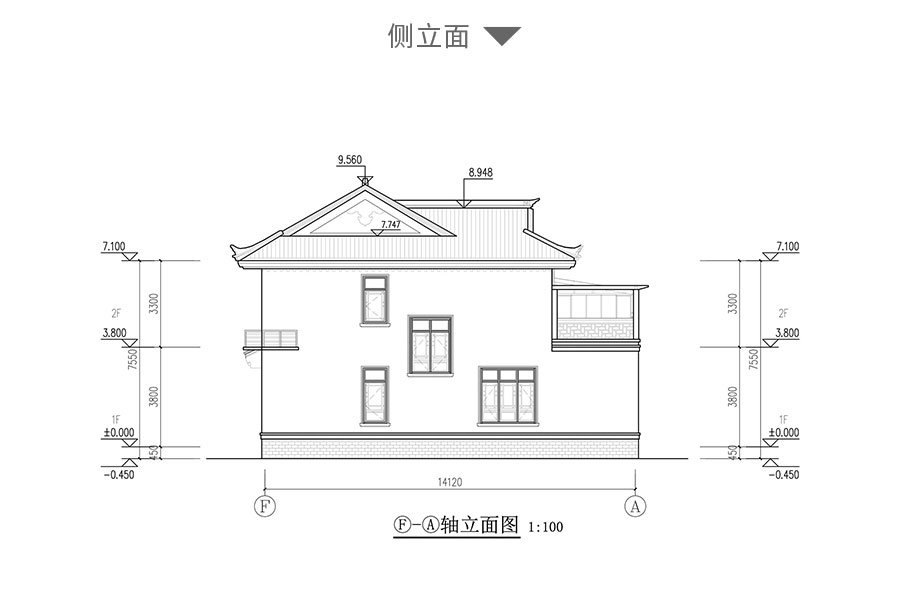 建筑立面圖:東立面圖,西立面圖,南立面圖,北立面圖,剖面圖;