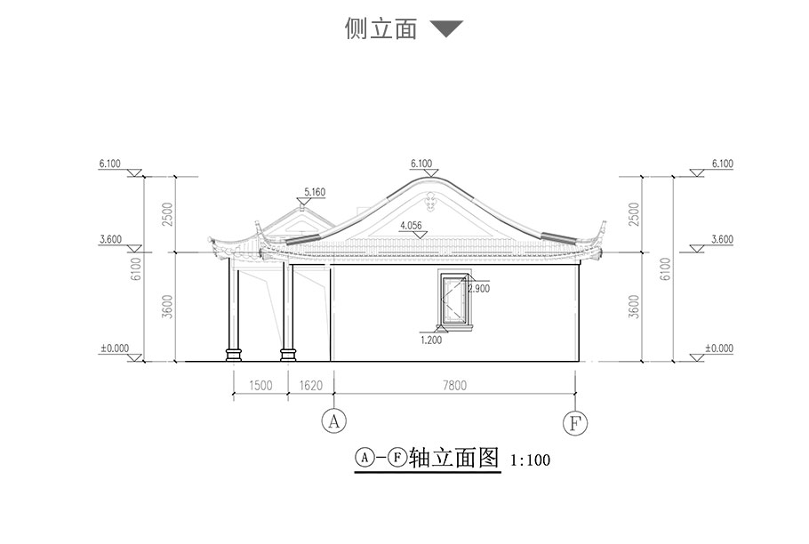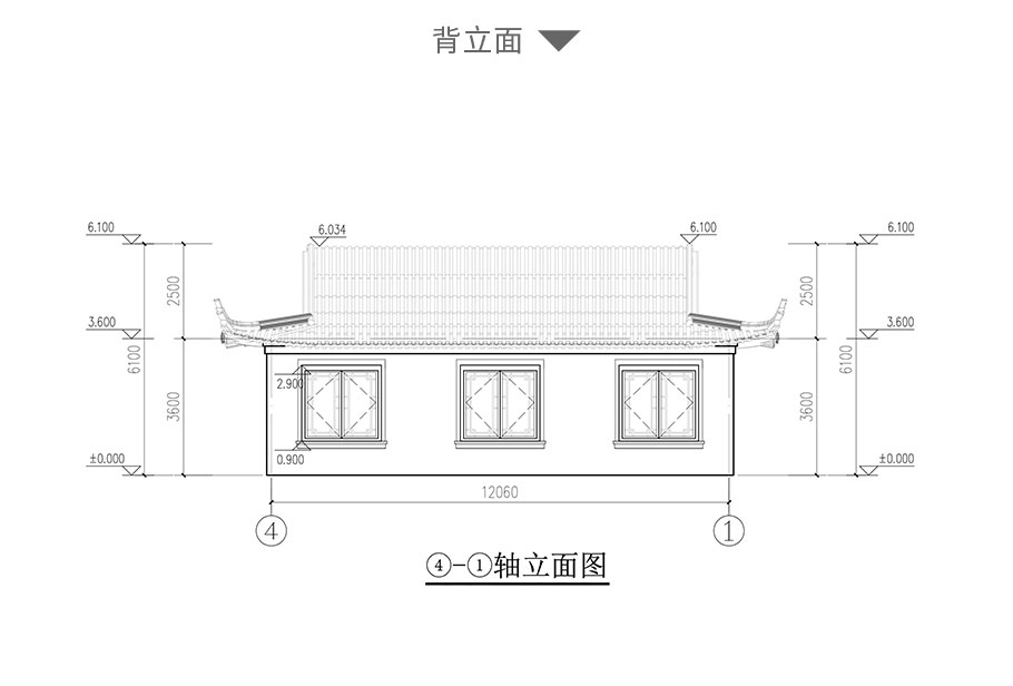 建筑立面圖:東立面圖,西立面圖,南立面圖,北立面圖,剖面圖;