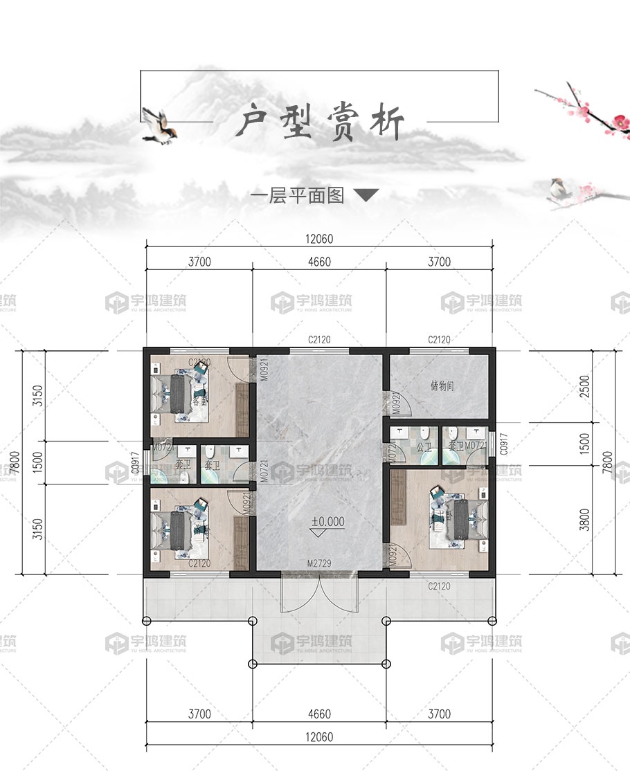 建筑平面圖:一層平面圖;