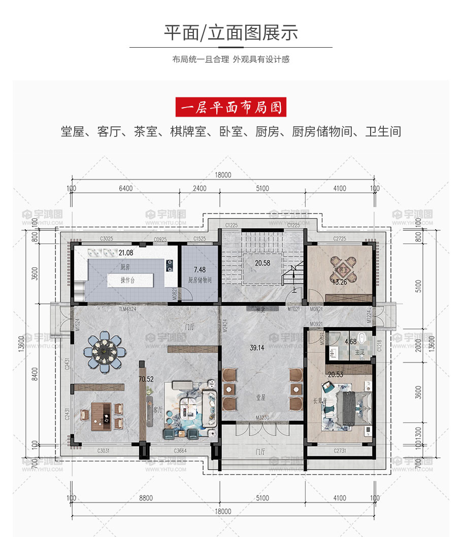| 開間:18米 | 進深:13.6米 | 占地面積:226平方米 | 建筑面積:588平方米 |