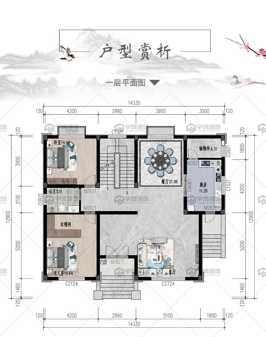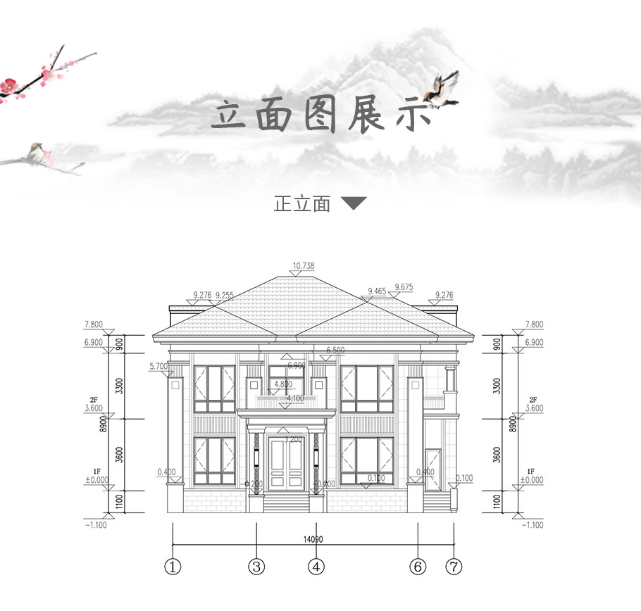 建筑平面圖:一層平面圖,二層平面圖; 建筑立面圖:東立面圖,西立面圖,南立面圖,北立面圖,剖面圖; 大樣圖:樓梯詳圖,細(xì)部大樣,門窗大樣 |