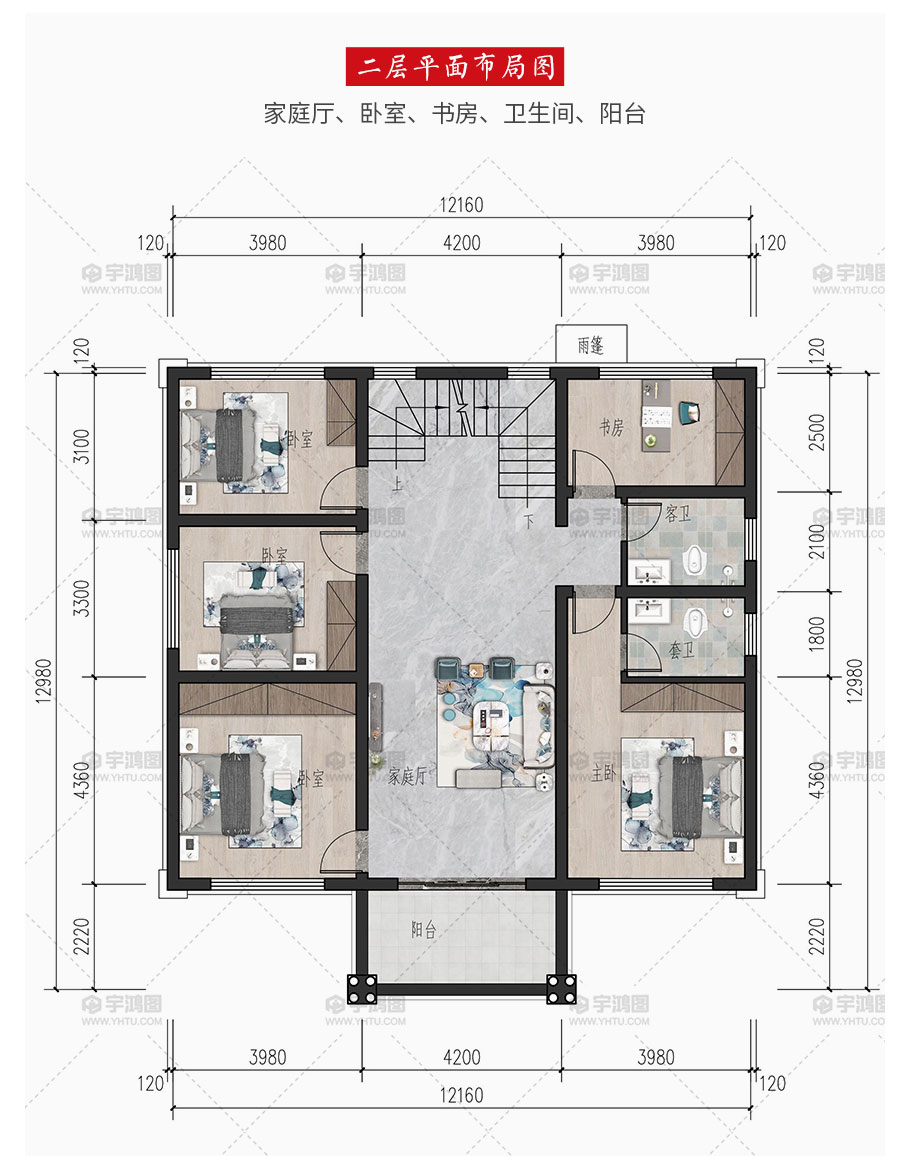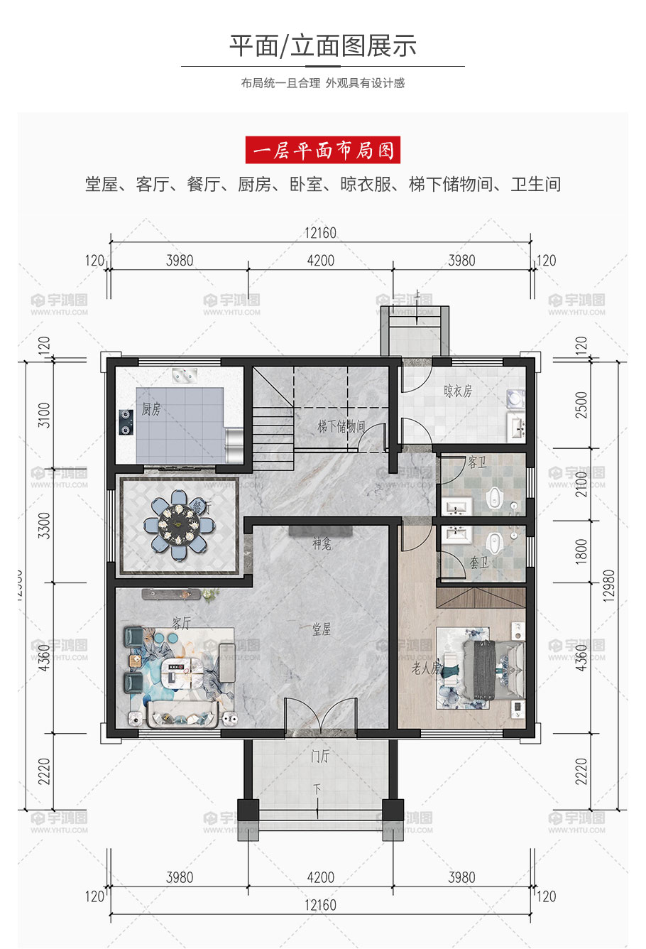 | 開間:12.16米 | 進深:12.98米 | 占地面積:143.5平方米 | 建筑面積:296.3平方米 |