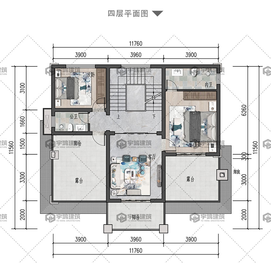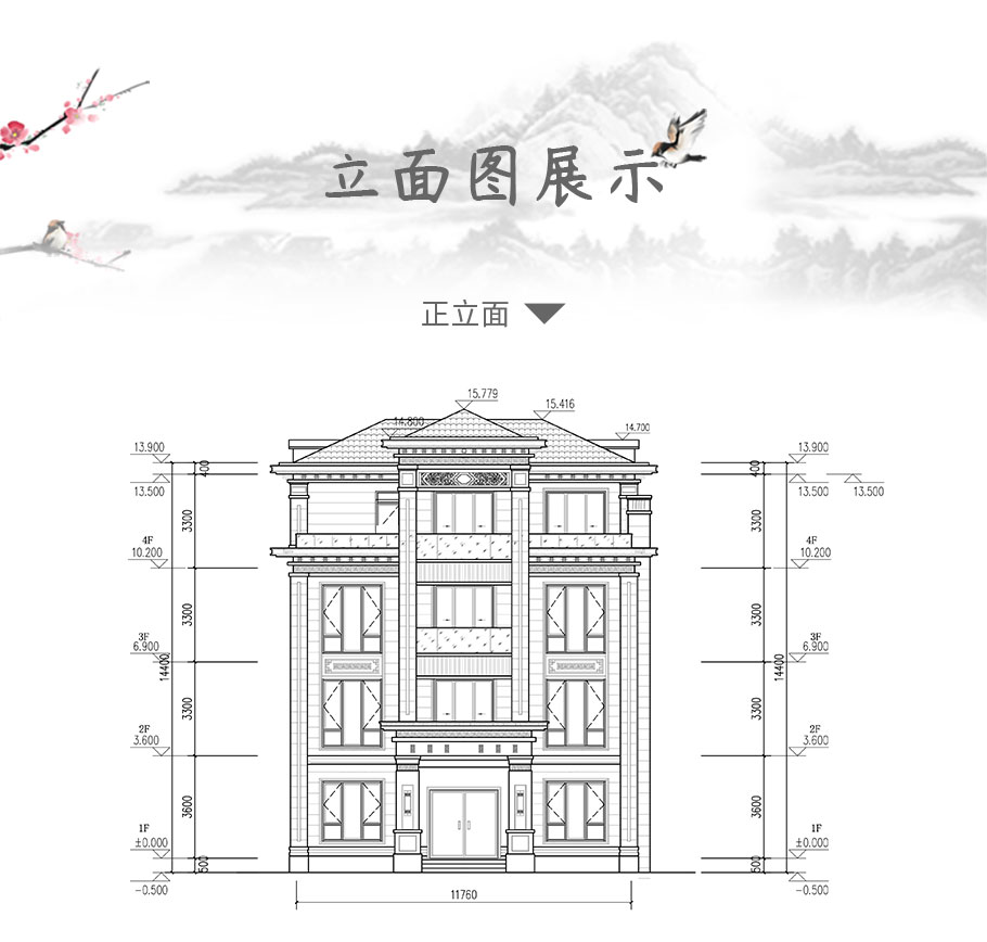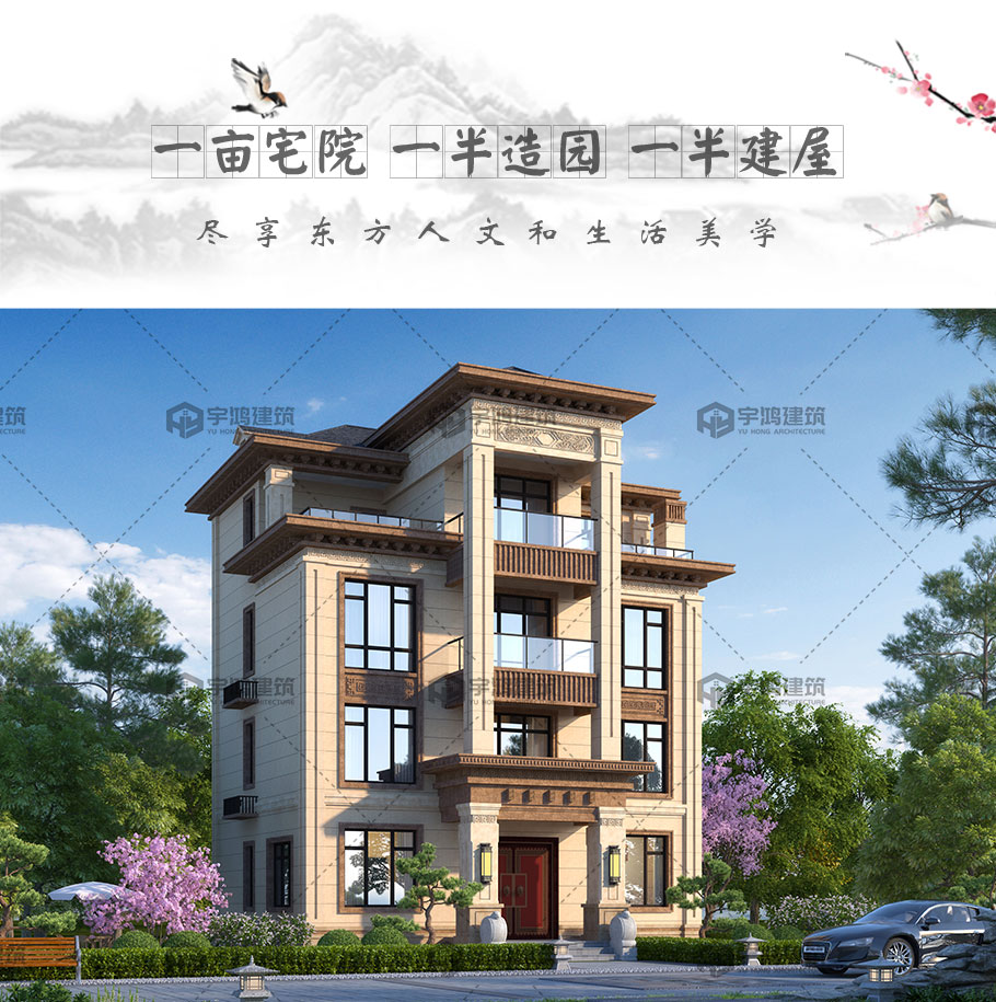 四層新中式框架結構別墅圖紙占地122平