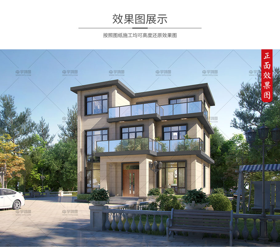 成品圖紙>現(xiàn)代風(fēng)格三層框架別墅占地113平自建別墅設(shè)計
