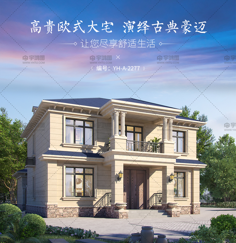 | 風格:歐式 | 層數(shù):二層 | 結構形式:磚混結構 | 圖紙編號:YH-A-2277 |
