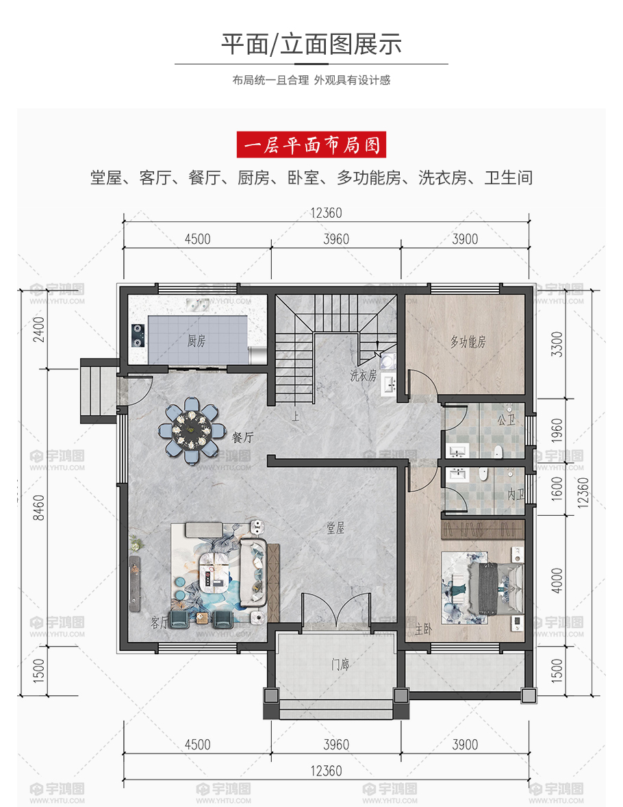 | 開(kāi)間:12.3米 | 進(jìn)深:12.3米 | 占地面積:145平方米 | 建筑面積:278平方米 |