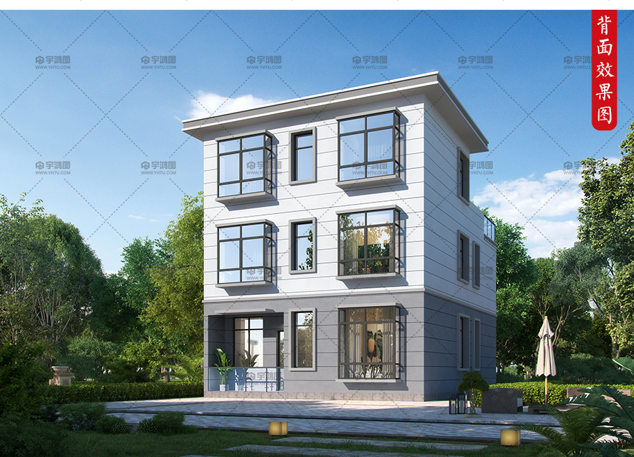 成品圖紙>三層現(xiàn)代風格框架結構別墅占地107平別墅設計