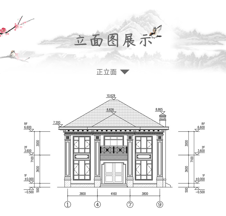 成品圖紙>新中式兩層別墅設(shè)計(jì)占地135平別墅設(shè)計(jì)圖