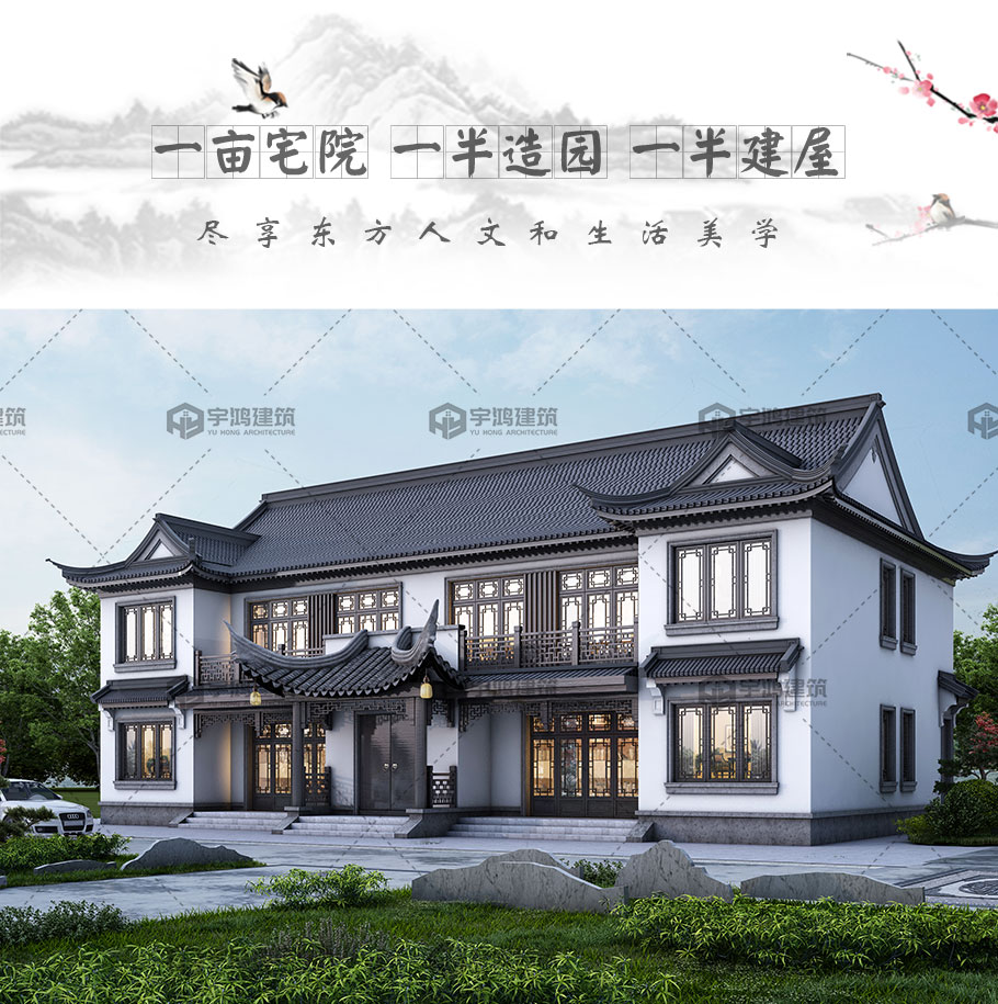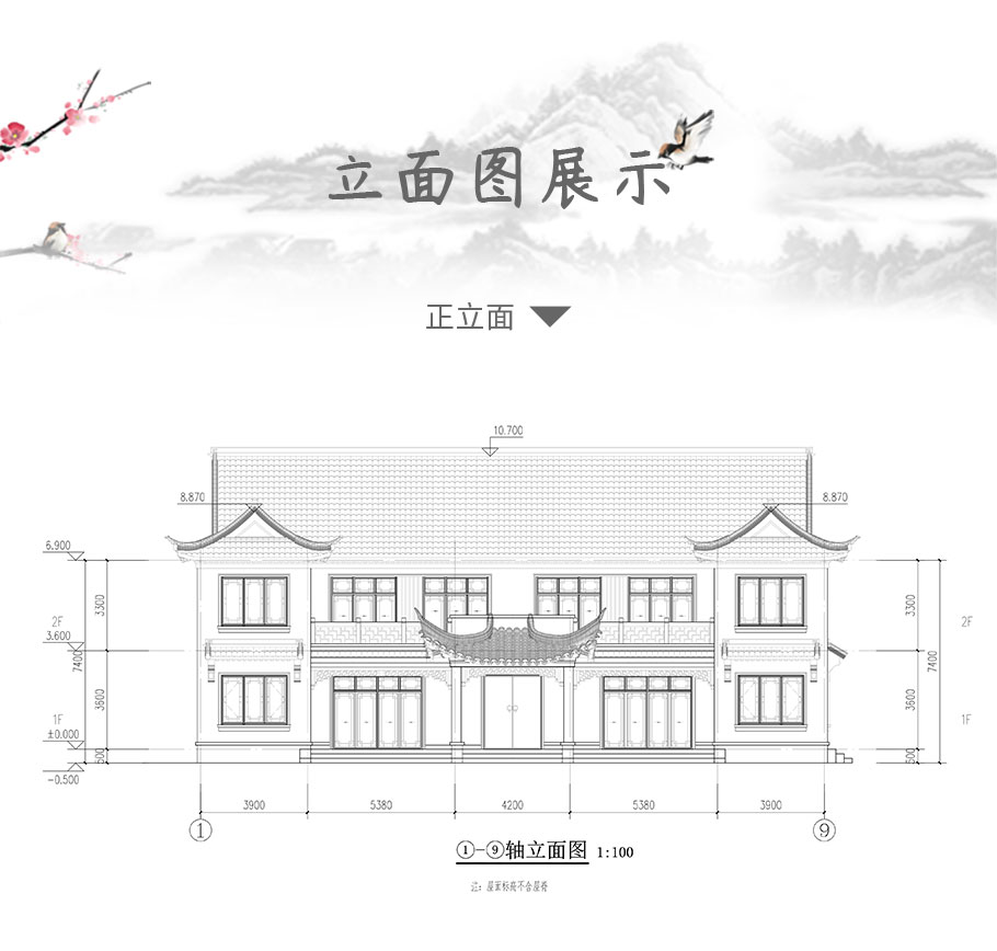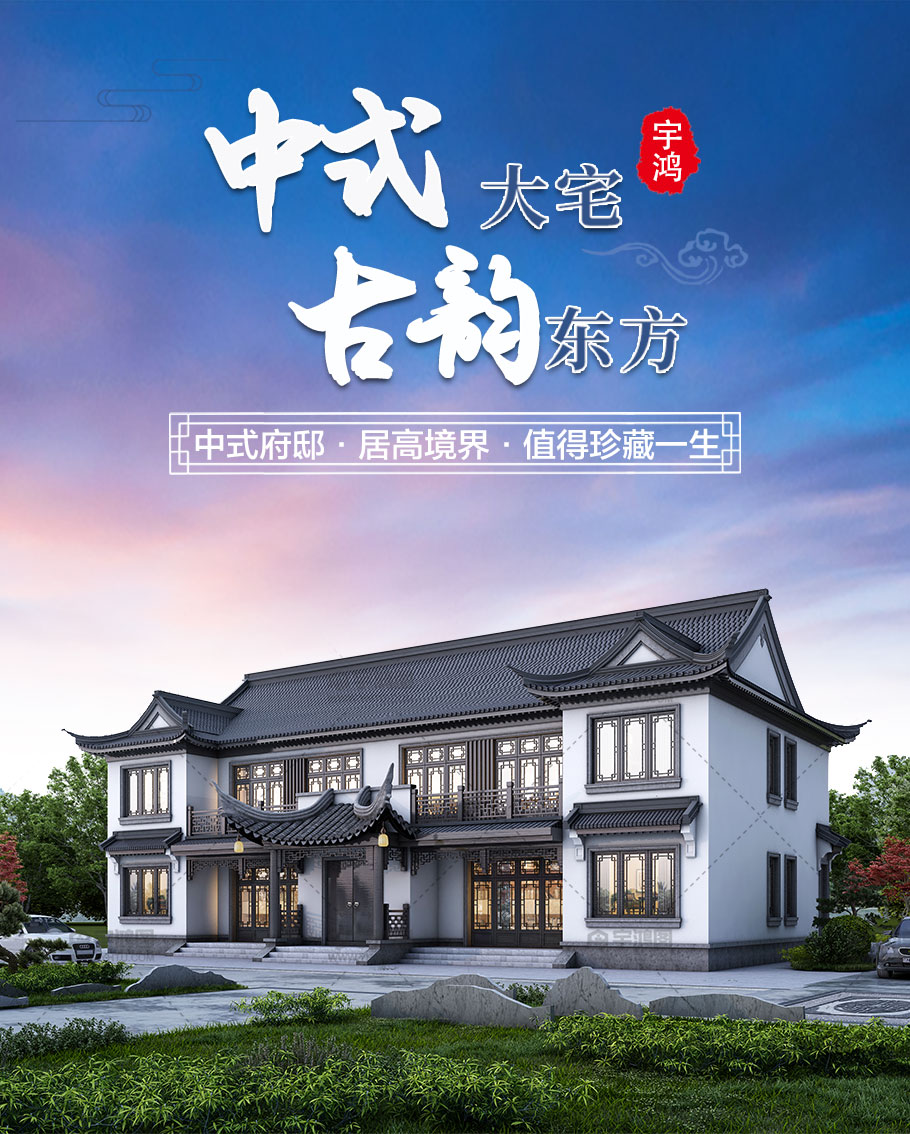大氣雙拼中式別墅兩層磚混結(jié)構(gòu)占地282平別墅圖紙