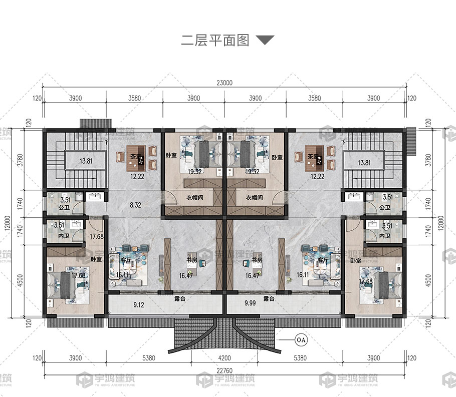 成品圖紙>大氣雙拼中式別墅兩層磚混結(jié)構(gòu)占地282平別墅圖紙