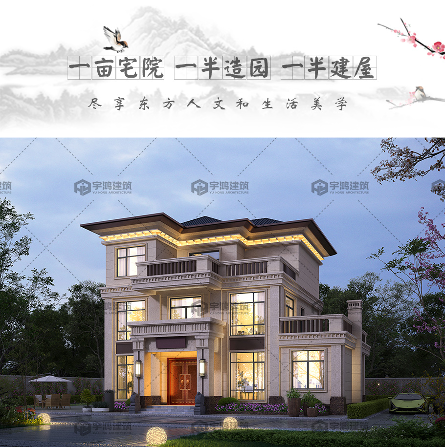 | 風(fēng)格:新中式 | 層數(shù):三層 | 結(jié)構(gòu)形式:磚混結(jié)構(gòu) | 圖紙編號(hào):YH-3-3565 |