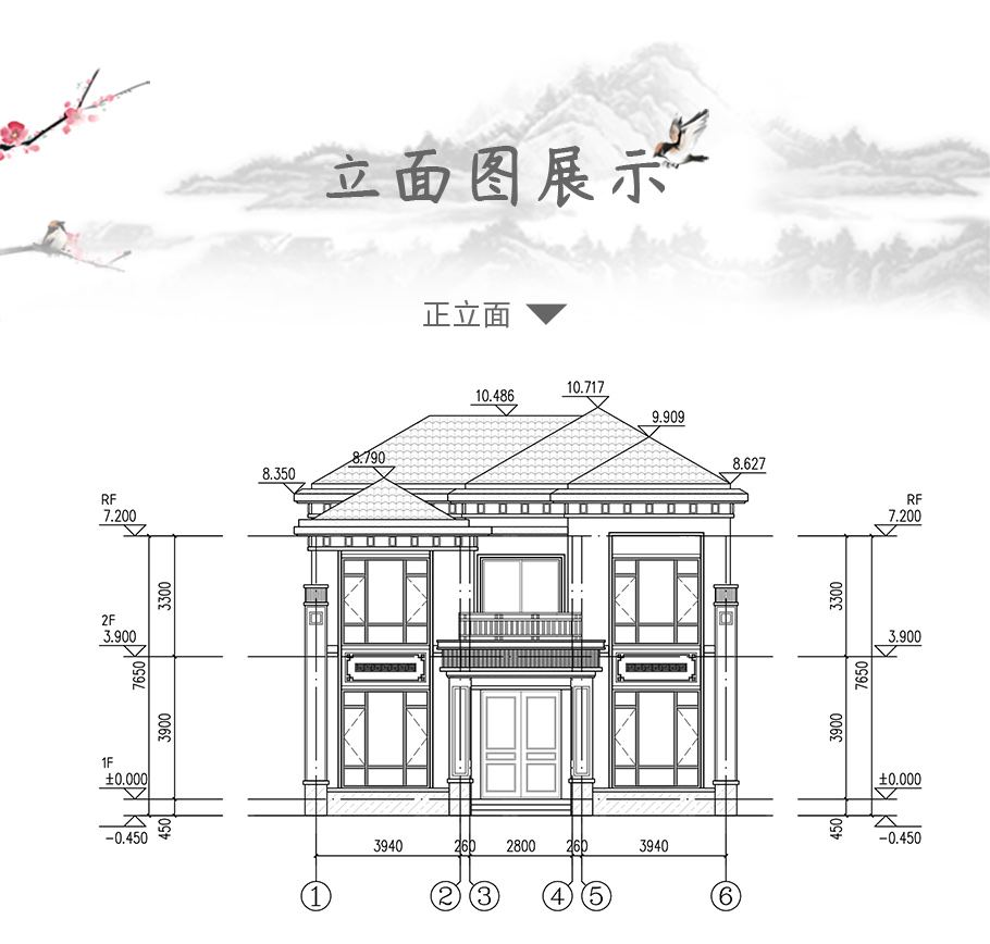 成品圖紙>磚混結(jié)構(gòu)新中式別墅兩層設計占地151平設計圖紙