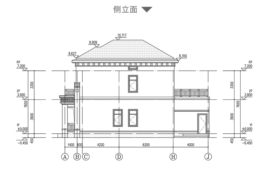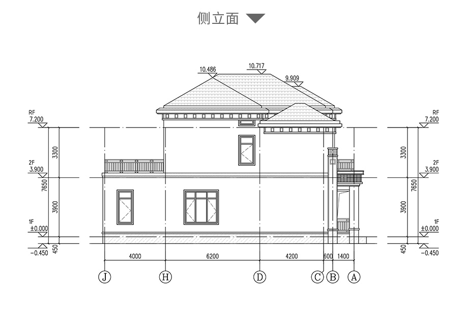 建筑平面圖:一層平面圖,二層平面圖; 建筑立面圖:東立面圖,西立面圖,南立面圖,北立面圖,剖面圖; 大樣圖:樓梯詳圖,細部大樣,門窗大樣 |