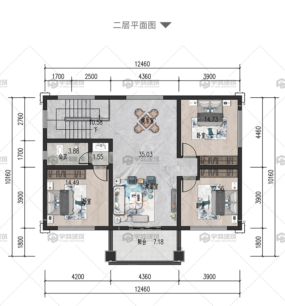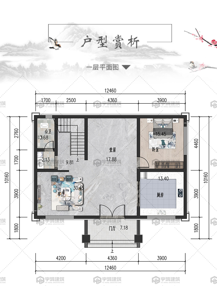 | 開間:12.4米 | 進深:10.16米 | 占地面積:117.8平方米 | 建筑面積:226.1平方米 |
