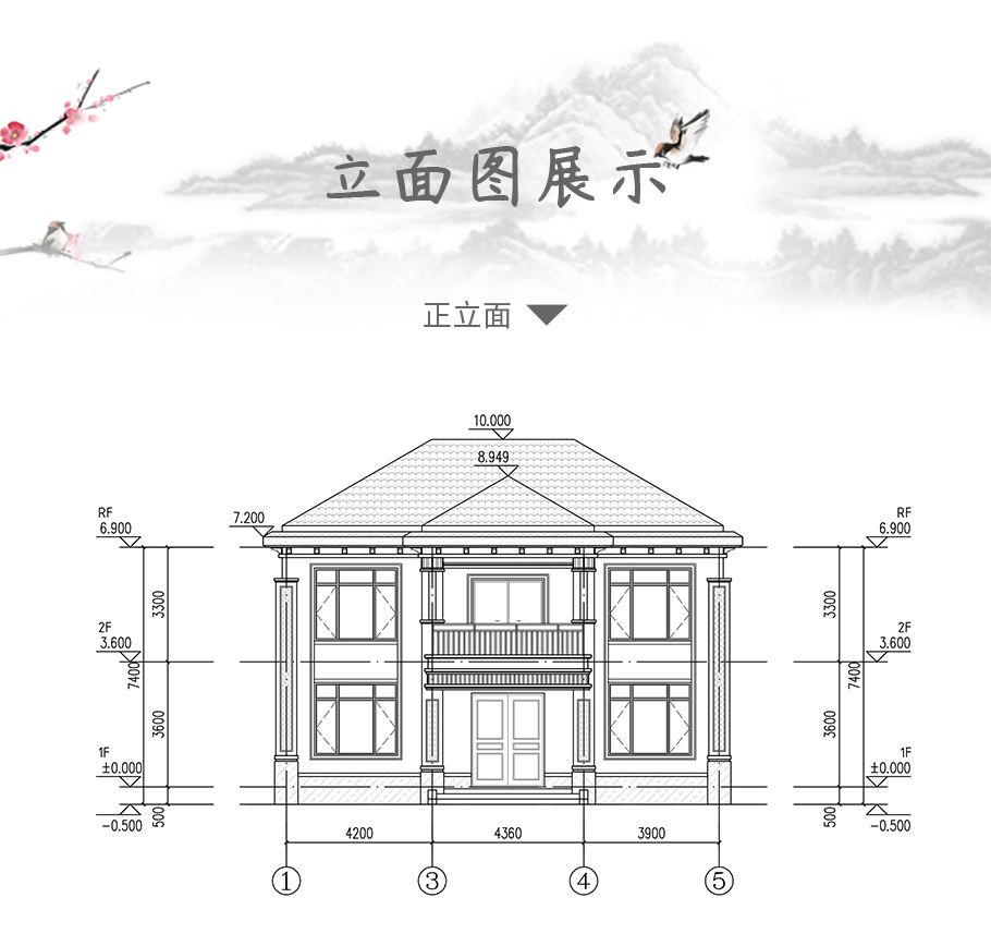 | 建筑圖: | 建筑平面圖:一層平面圖,二層平面圖; 建筑立面圖:東立面圖,西立面圖,南立面圖,北立面圖,剖面圖; 大樣圖:樓梯詳圖,細部大樣,門窗大樣 |